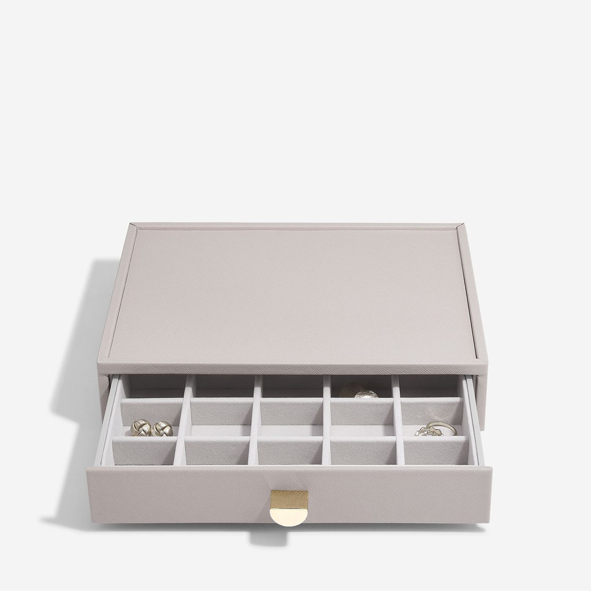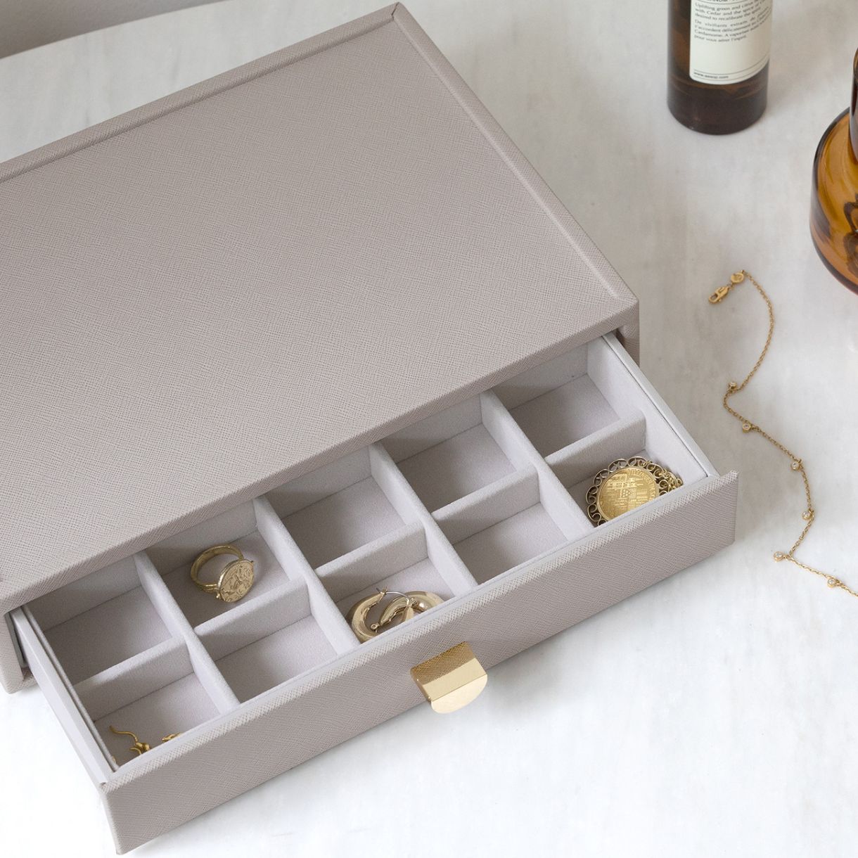 Кутиите за бижута на Stackers са умело проектирани, така че можете да създадете свои собствени, като изберете кои слоеве и аксесоари най-добре подхождат на вашата колекция бижута. Като алтернатива, всеки слои е идеалното съхранение на бижута в чекмеджето, ако искате да поддържате тоалетната си масичка чиста.