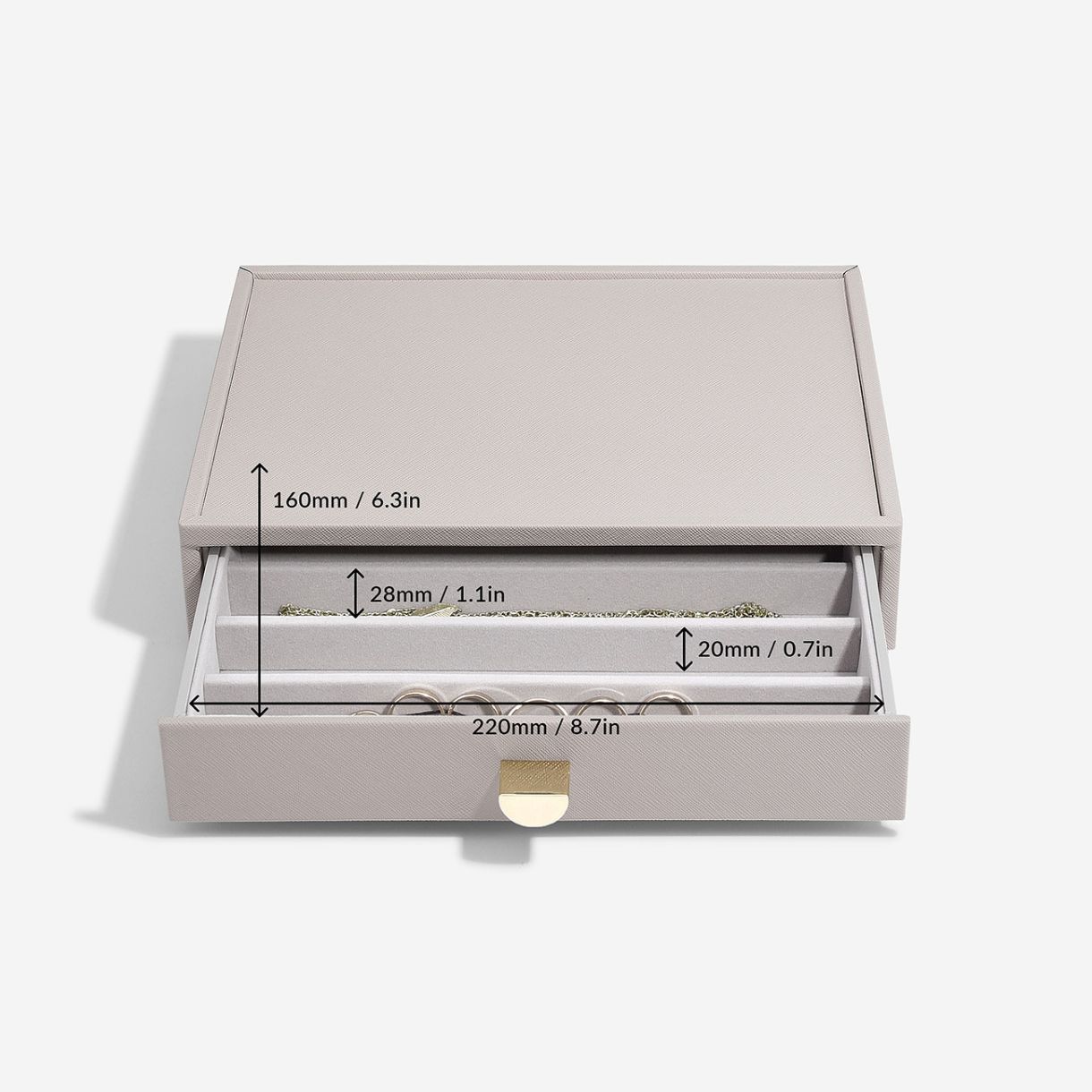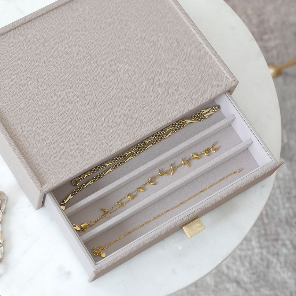 Кутиите за бижута на Stackers са умело проектирани, така че можете да създадете свои собствени, като изберете кои слоеве и аксесоари най-добре подхождат на вашата колекция бижута. Като алтернатива, всеки слои е идеалното съхранение на бижута в чекмеджето, ако искате да поддържате тоалетната си масичка чиста.