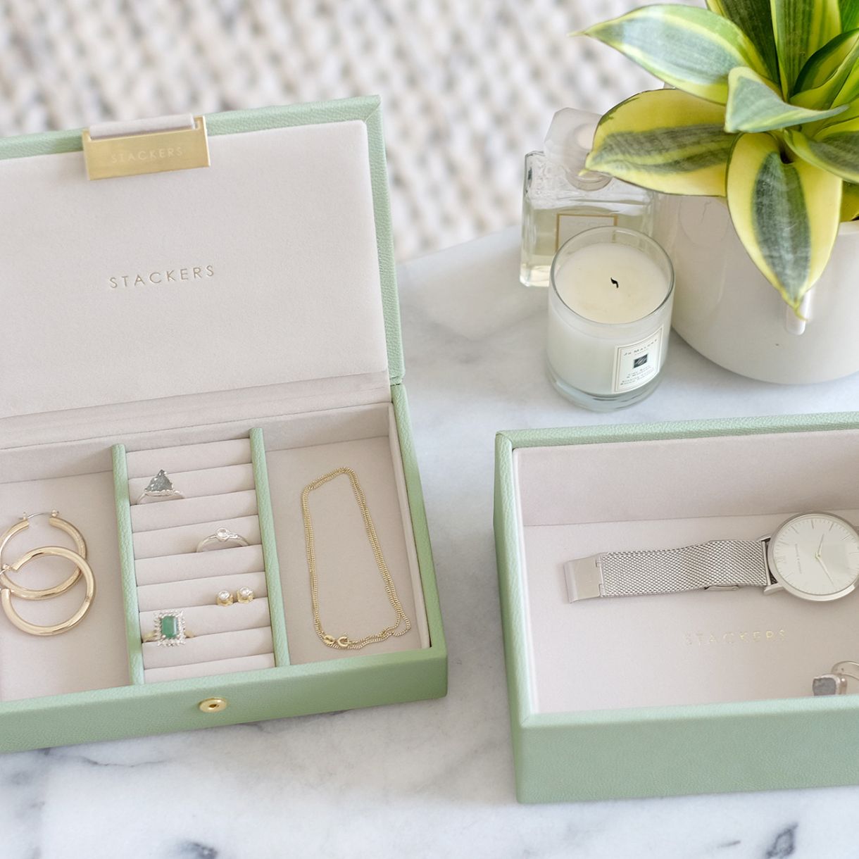 Тези мини кутии са идеални за по-малка колекция от бижута. Предоставят уникално пространство за всички видове бижута, от гривни до пръстени, талисмани и часовници.