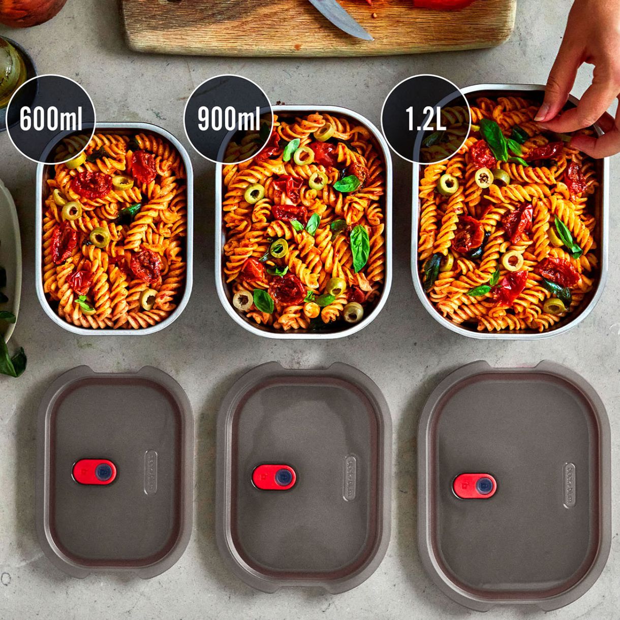 Тези стоманени кутии са устойчиви на теч поради вакуумното уплътнение в капака, но това може да означава, че са трудни за отваряне (всъщност почти невъзможно). За да отворите капака, просто натиснете бутона, за да освободите ключалката.