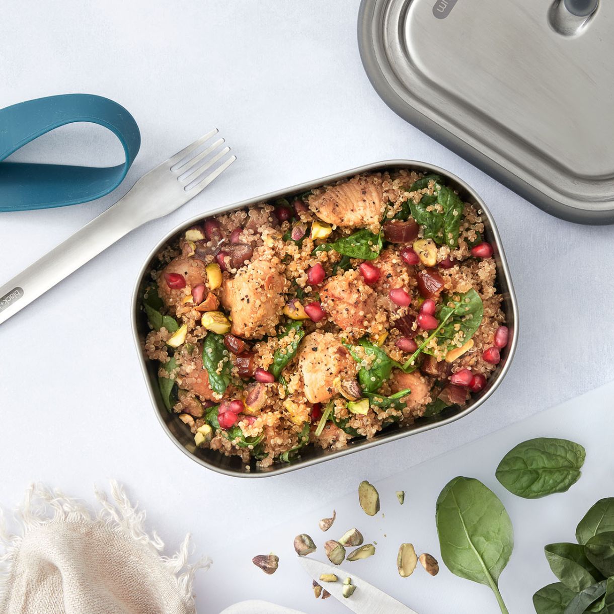Първата кутия за обяд от неръждаема стомана на английската компания Black+Blum. Това е 3 в 1 мултифункционална кутия за обяд, която ви позволява да носите обяда си, да готвите ястия във фурната и дори да съхранявате предварително приготвени ястия във фризер.