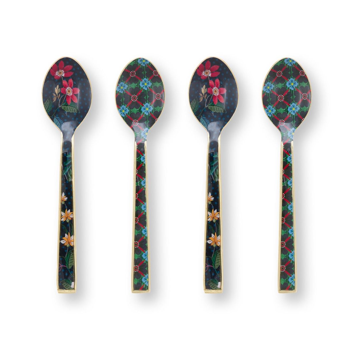 Този комплект лъжици е част от колекция Berry Blues. Идеален за чай, кафе и десерти. Лъжиците са емайлирани и завършени със златен ръб.