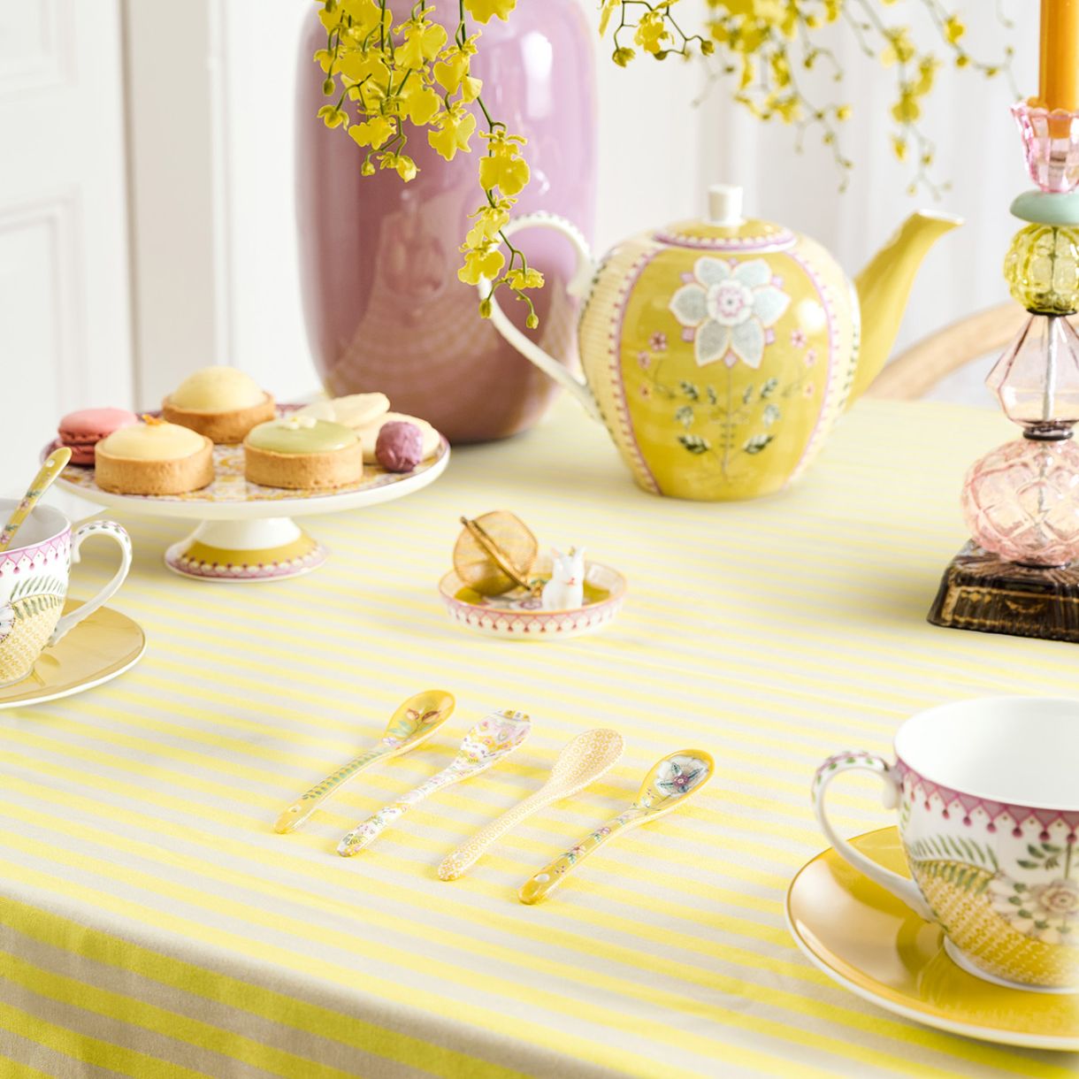 Добавете нотка елегантност към вашата маса за чай с комплекта от 4 чаени лъжички Lily&Lotus на Pip Studio. Идеални за чай, кафе или малък десерт. Колекцията Lily&Lotus е пъстър поклон пред природата. Този слънчев комплект мигновено внася весела, лятна атмосфера на вашата маса. Всеки артикул е с въображаеми илюстрации на лилии, лотосови листа и глухарчета, комбинирани с меки пастелни тонове като светло зелено, лилаво и сияйно жълто. Красиво се съчетава с чаши и чайника от същата колекция. Представен в луксозна подаръчна кутия, идеална за подарък или за почерпка за вас самите.
