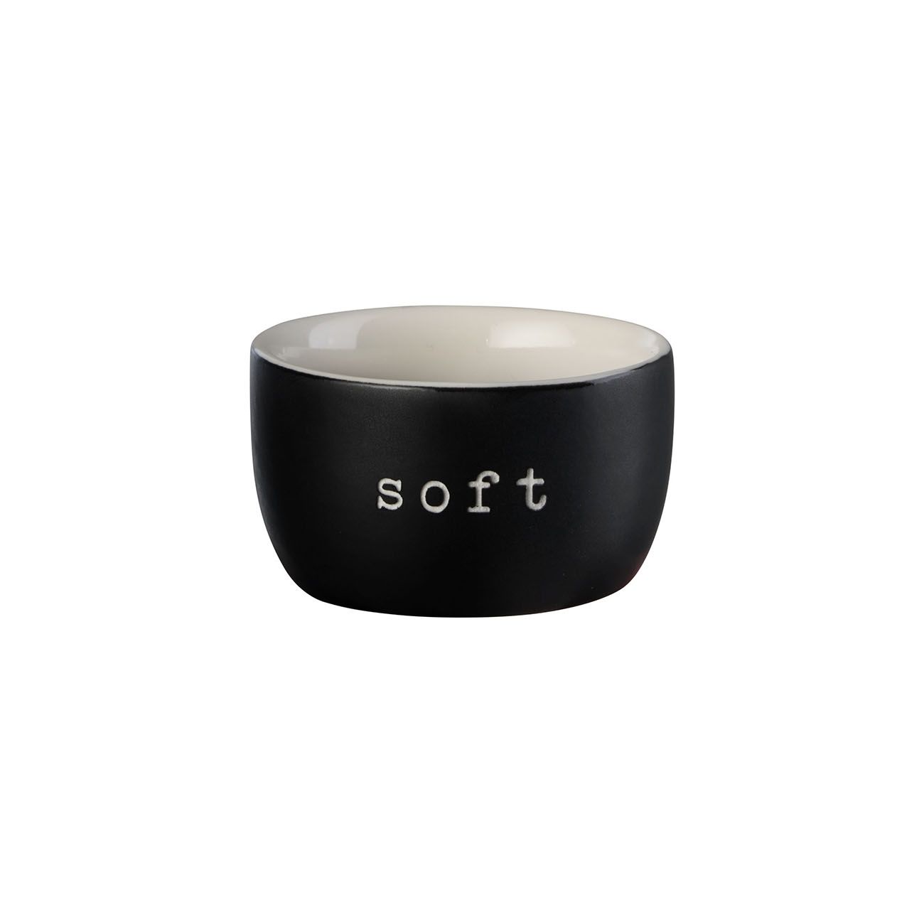 Поставка за яйце в три цвята с надпис за рохко, нормално или твърдо сварено. Колекция Hey! предава послания под формата на пясъкоструйни изявления, които ви зареждат с добро настроение.