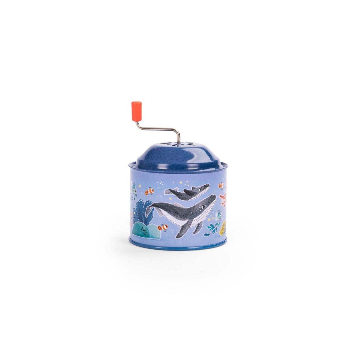 Завъртете, завъртете и нека музиката започне! Цветната метална музикална латерна, която напомня на играчките, с които сме израснали, изобразява приятелите на Поли, които изследват морското дъно.