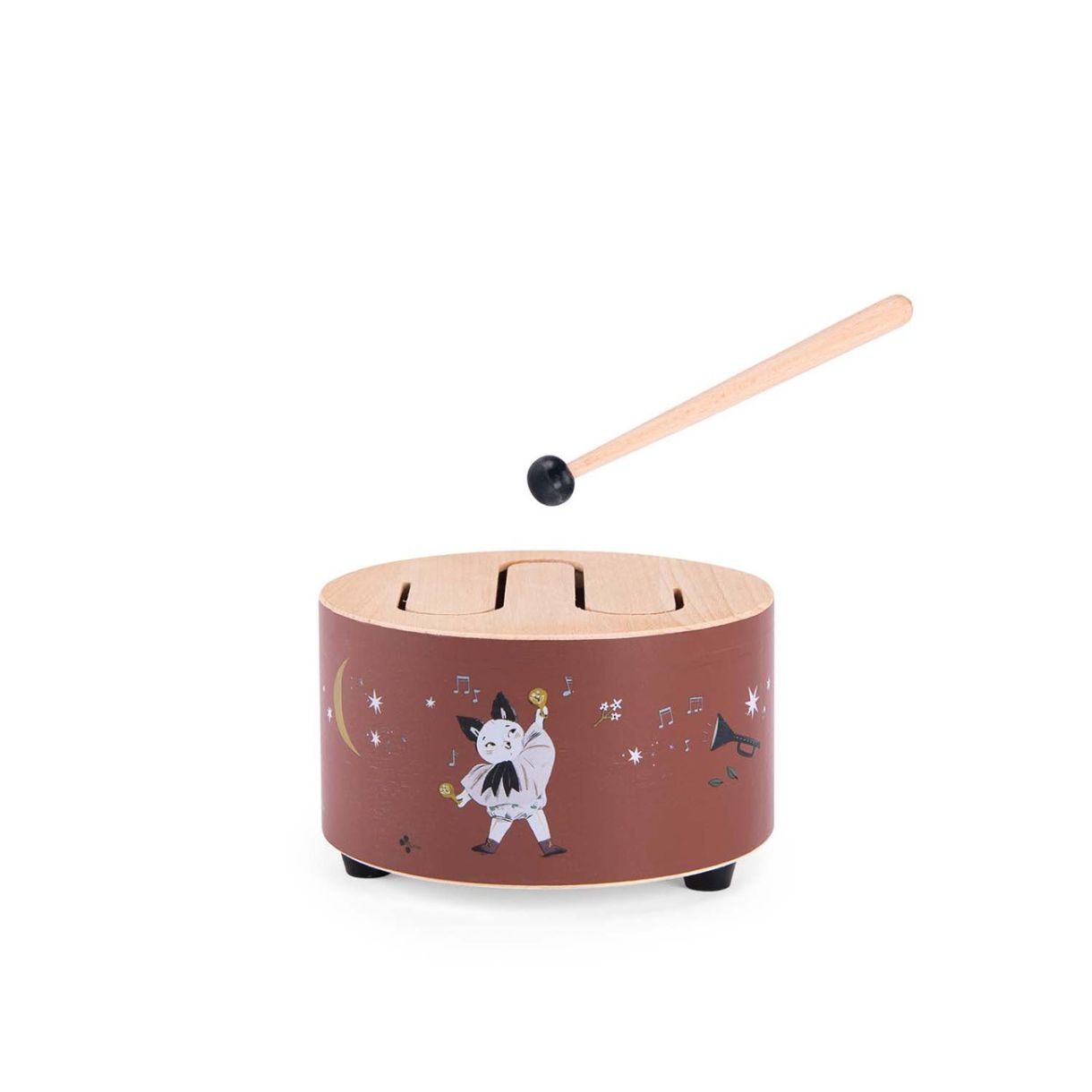 Кръгъл дървен барабан, който е лесен за употреба. Той ще събуди музикалната чувствителност и чувството за ритъм на детето ви.