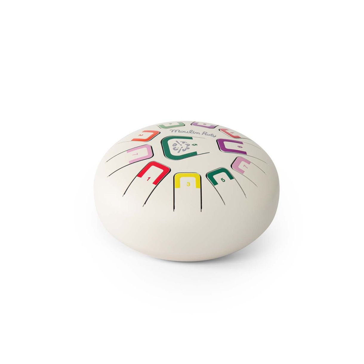 Открийте стоманения барабан за деца от колекцията "След дъжда" на френската фирма Moulin Roty. Благодарение на неговите 11 ноти ще можете да свирите релаксиращи и омагьосващи мелодии. Инструмент за запознаване на децата с ударните инструменти. 11 ноти, обозначени с цвят и номер, за свирене с ръце, пръсти или палки за барабани.