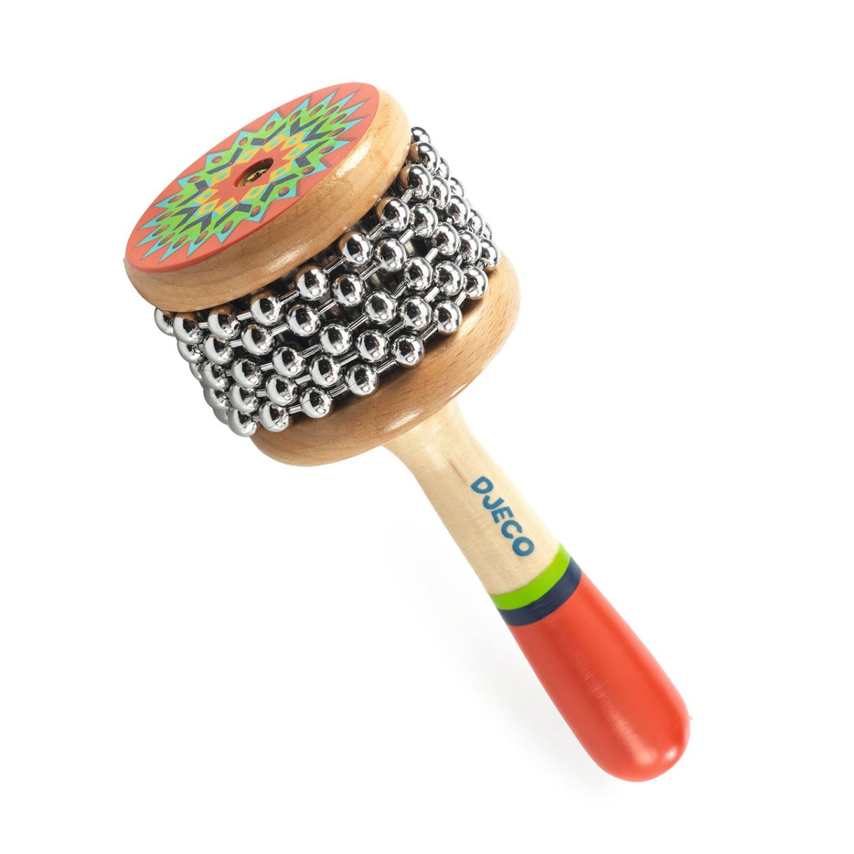 Кабаса с красиви илюстрации на индианска тематика. Когато завъртите топките върху назъбената метална част или разклатите инструмента, той звучи точно като гърмяща змия! Перфектен перкусионен инструмент за малки музиканти на 5 и повече години.