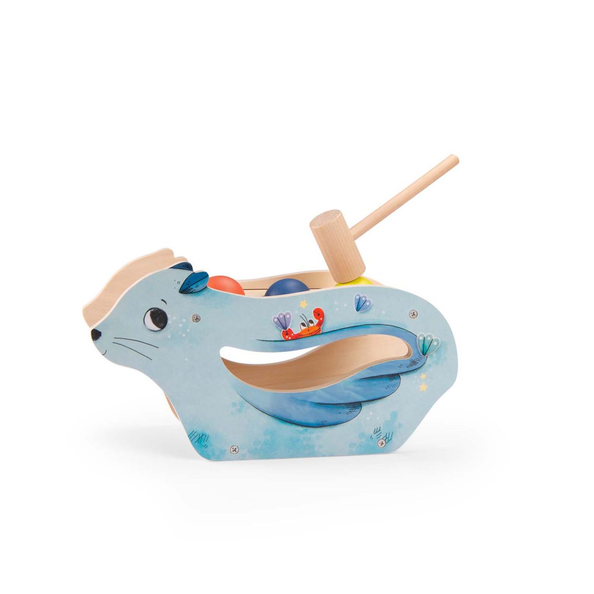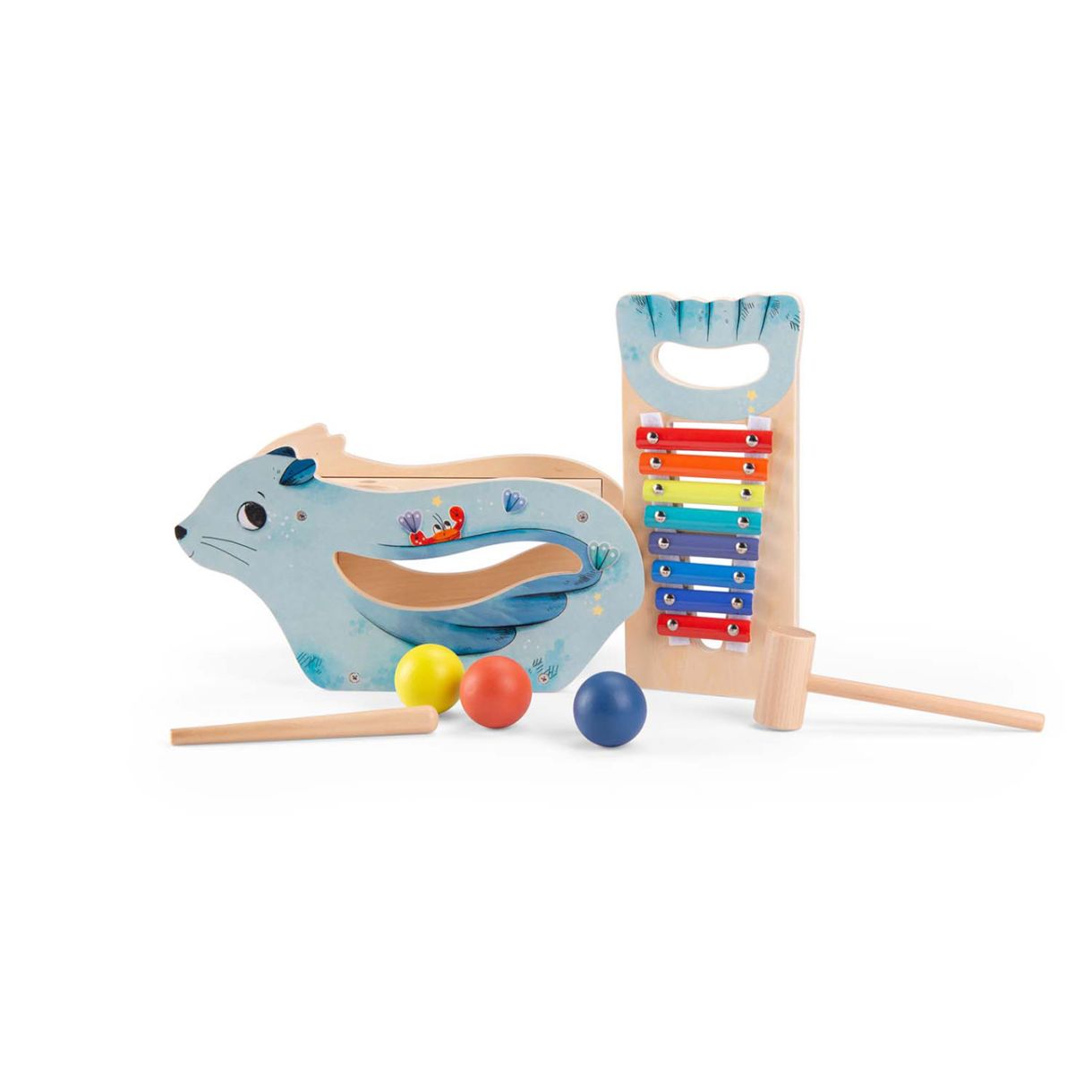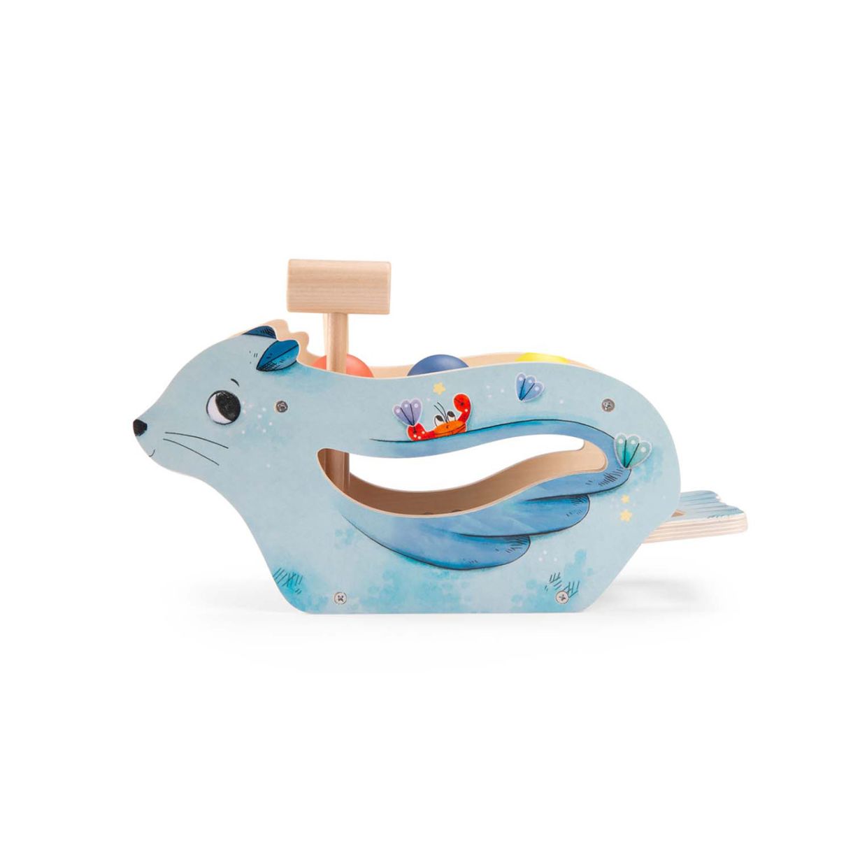 Нека да направим музика с морския лъв! Използвайте малкото чукче, за да докоснете цветните топки. Когато топчето падне върху металофона, започва да свири нежна мелодия. 2 в 1, металофонът е подвижен, така че можете да свирите навсякъде.