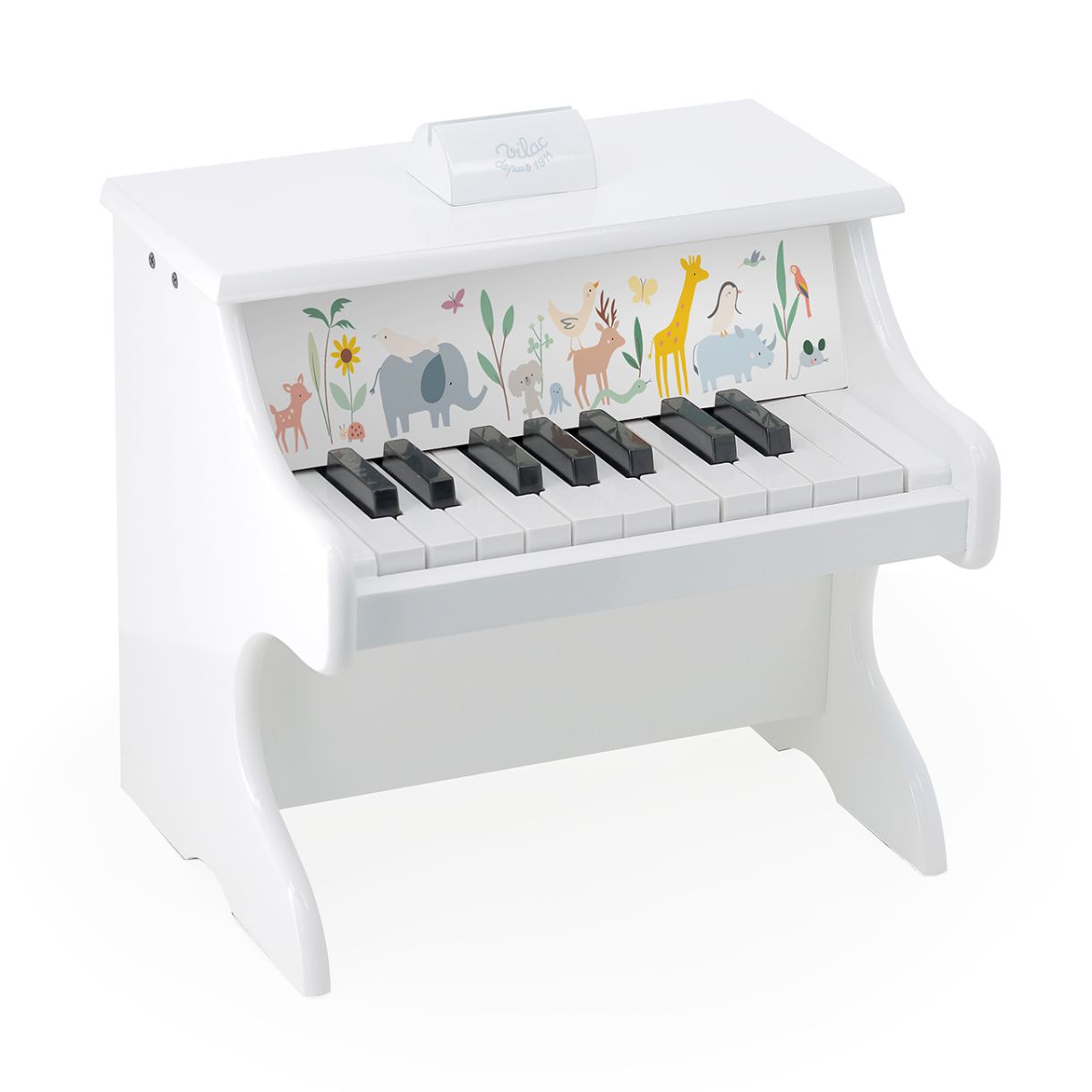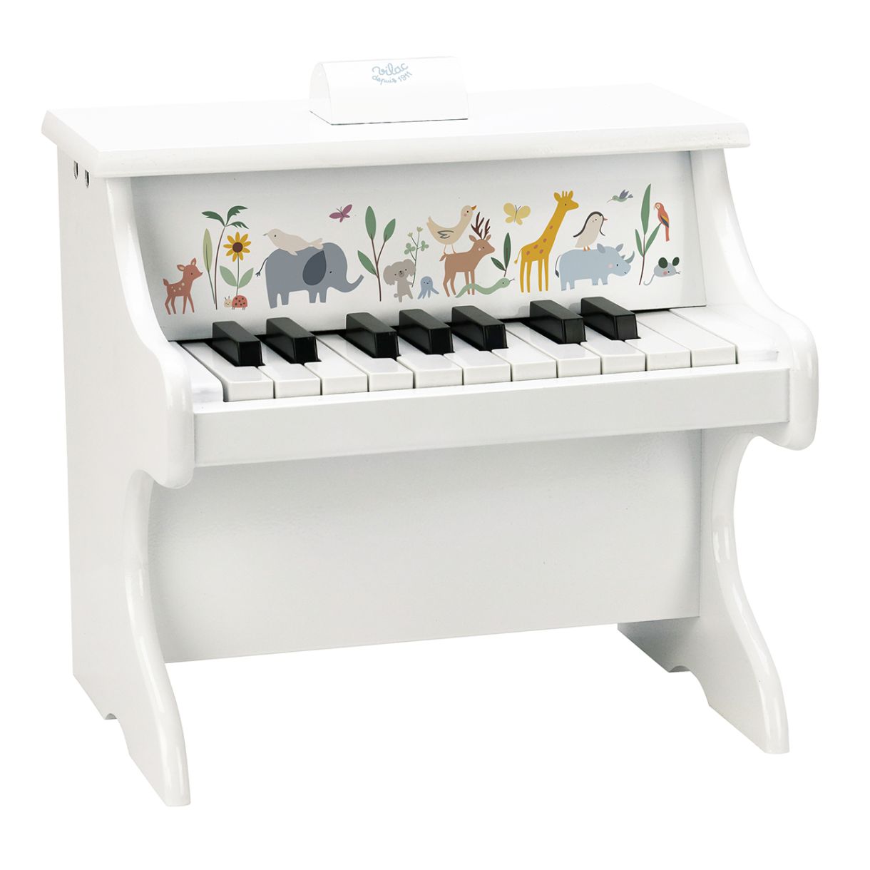 Всички мечтаем един ден да станем виртуози на музикален инструмент, Бетховен, Моцарт или художника на мечтите си! Играчки  също са създадени, за да събуждат страсти. Тази симпатична дървена играчка пиано, илюстрирана от художничката Сара Бец-Кубели, идва с десет партитури, подходящи за деца на възраст над 3 години, за да им помогне да направят първите си стъпки в света на музиката.
