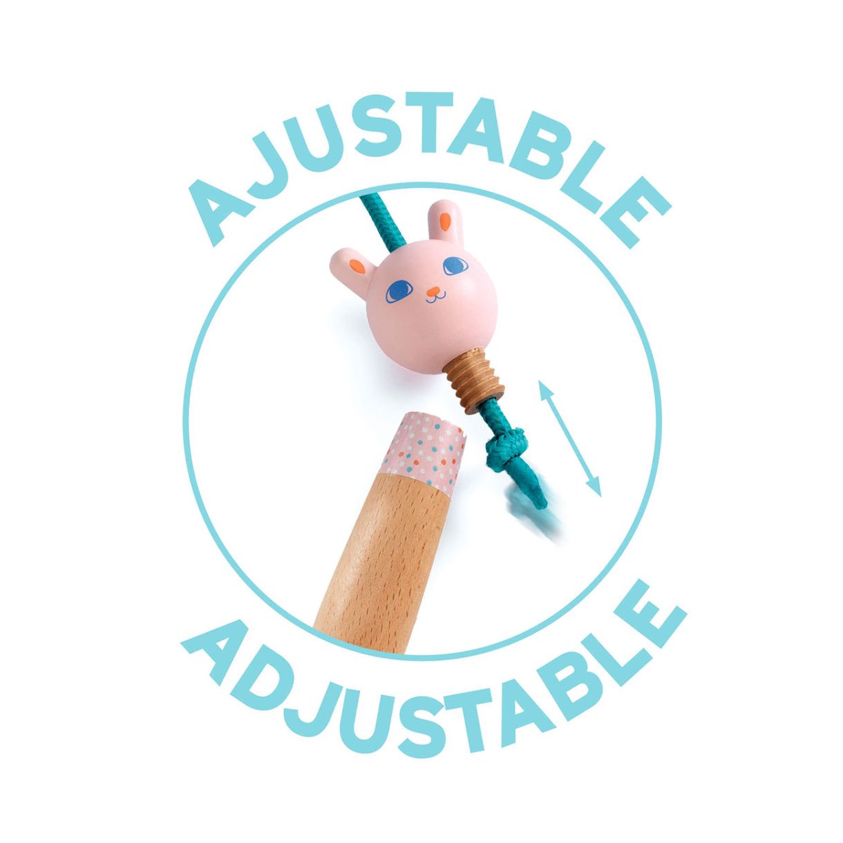 Въжето за скачане котето Леа е очарователно и цветно въже за скачане. Дължината на въжето може да се регулира според ръста на децата за оптимална практичност: просто развийте главата и завържете отново възлите!