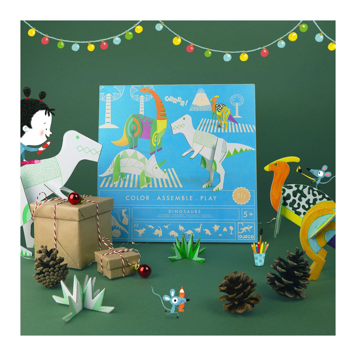 Креативен комплект с разнообразие от картонени парчета, които детето трябва да оцвети и сглоби. След като всичко е готово пред вас ще се появят много и различни динозаври! С тях вашето мъниче ще може да играе с часове.