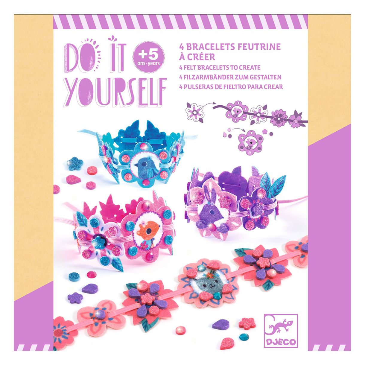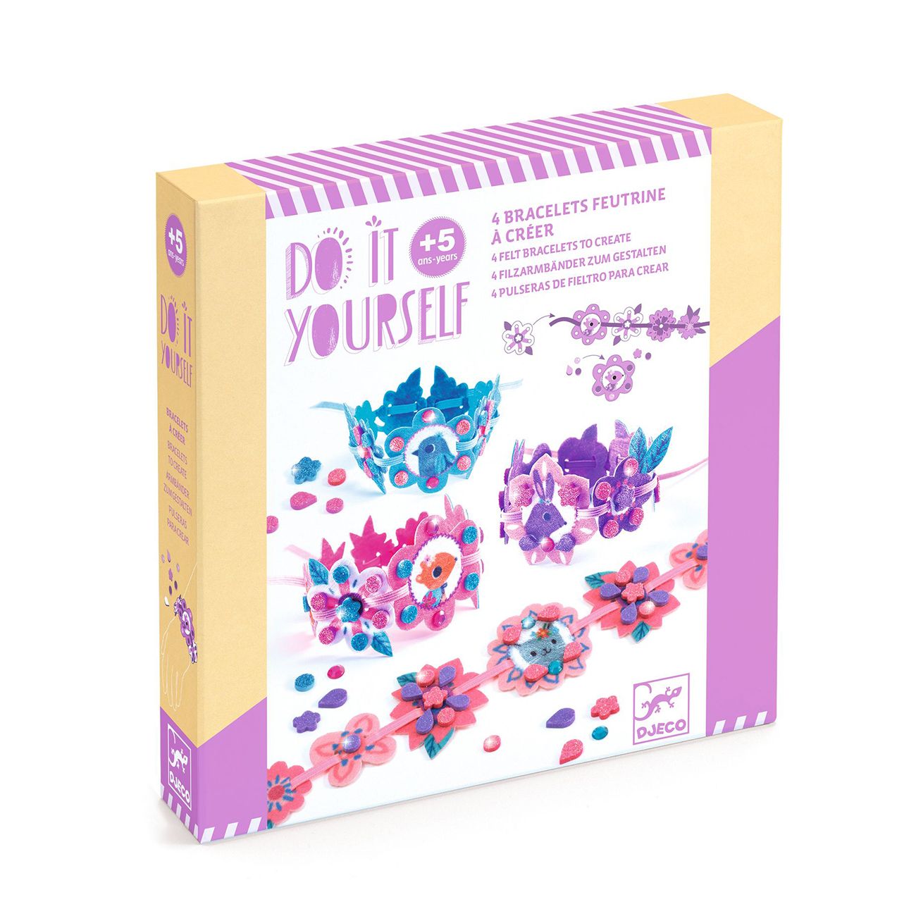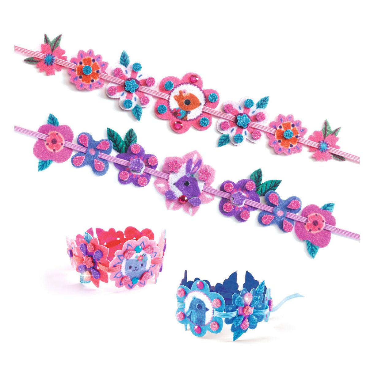 Комплект от колекцията изкуства и занаяти с 4 сладки гривни за сглобяване и декориране с блестящи стикери от пяна и стикери с кристали. Прекрасен подарък за най-добрите ви приятели или за себе си.