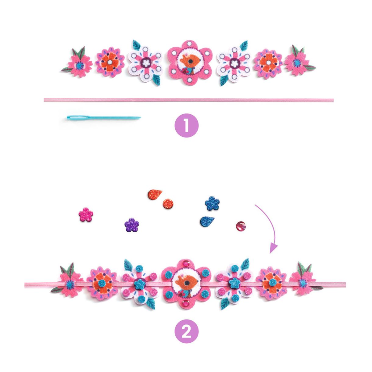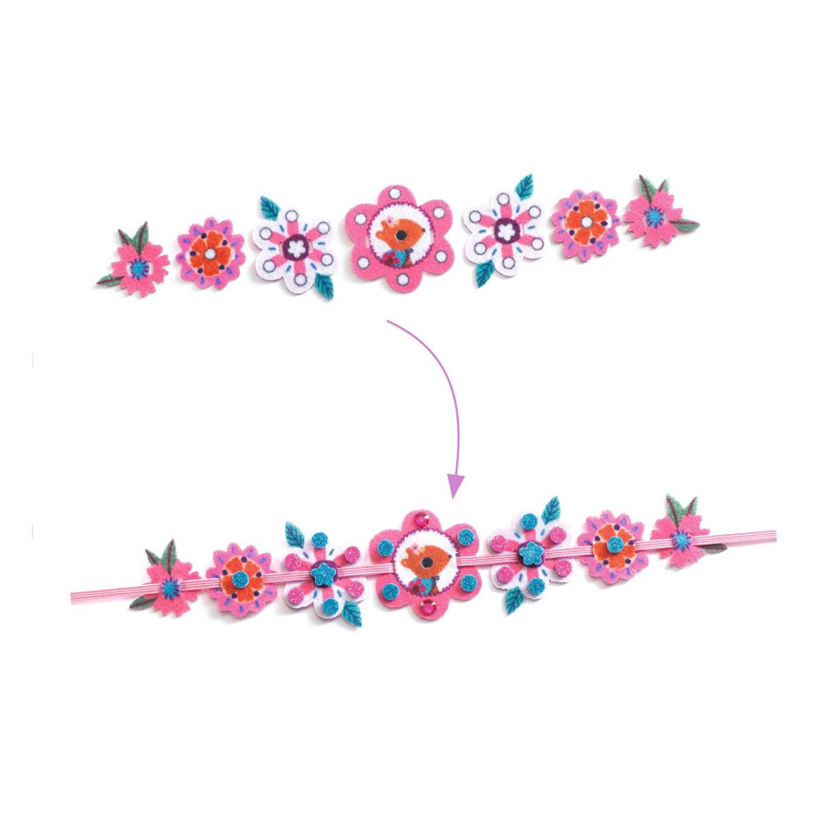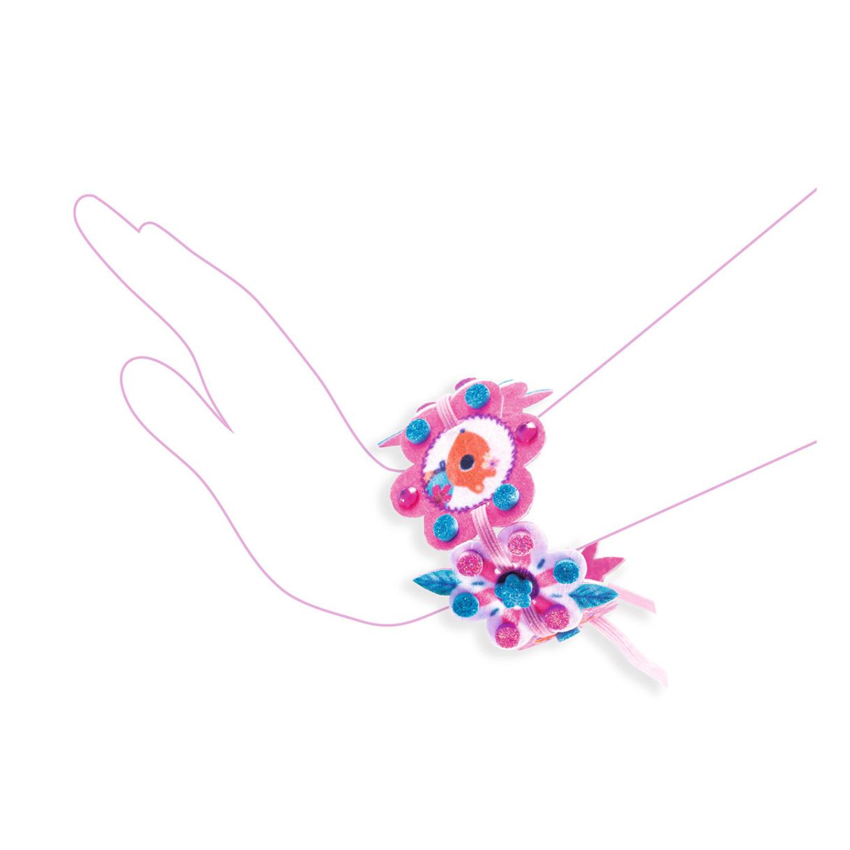 • 28 предварително перфорирани парчета филц (7 за всяка гривна)
