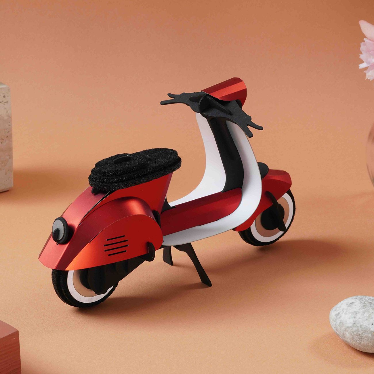 Перфектният „Направи си сам“ проект за носталгични фенове на стари автомобили, ентусиасти на винтидж мотопеди, пътешественици на две колела и креативни майстори. Този скутер от картон и хартия е забавен за сглобяване и стилна декорация на бюрото и рафта ви.