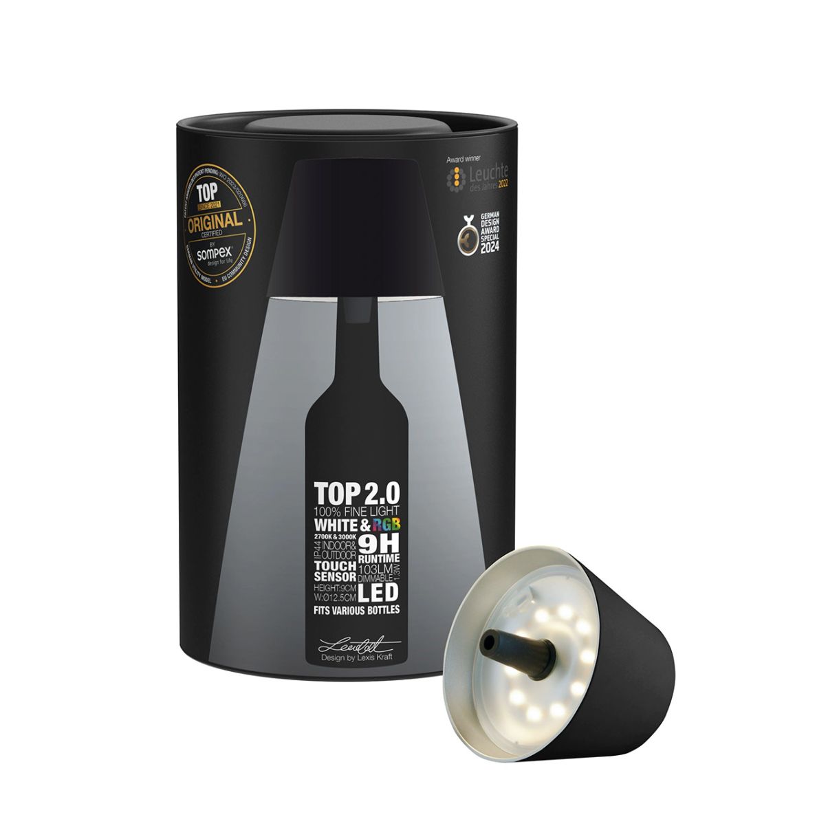 • TOP 2.0 работи на батерия и осигурява до 40 часа светлина както на закрито, така и на открито.