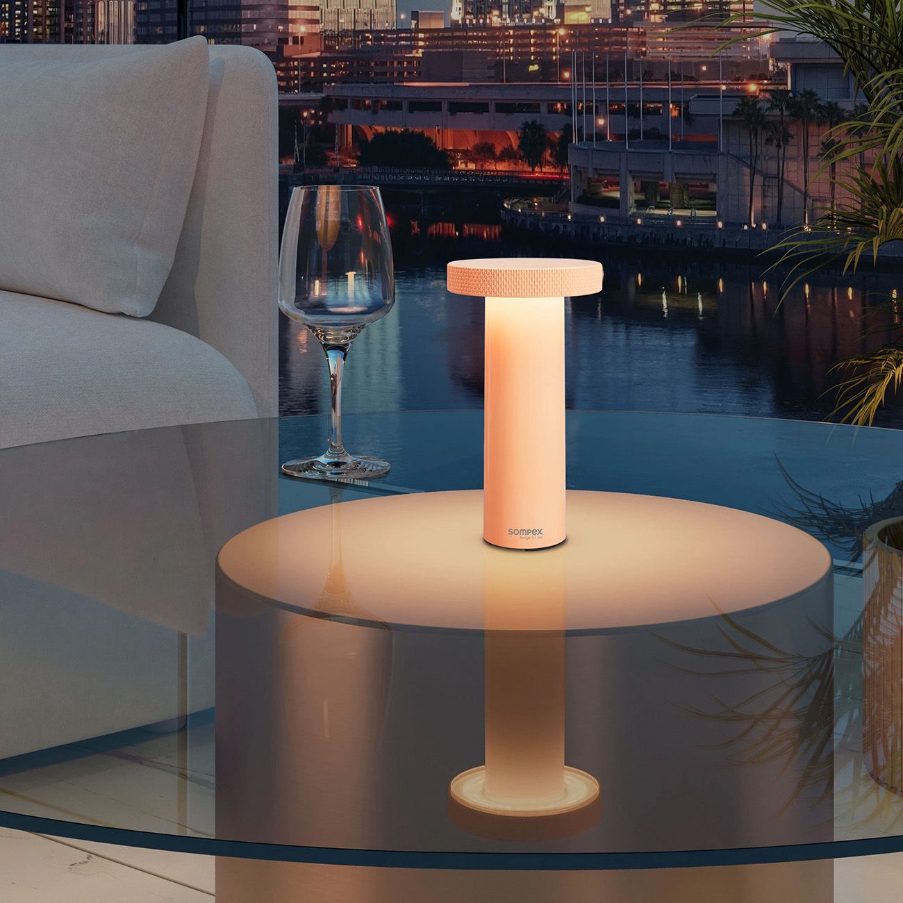 Акумулаторната лампа Volume създава перфектно настроение навсякъде: независимо дали е на терасата с чаша вино, като атмосферен съпровод на масата за хранене или като мека светлина в хола.