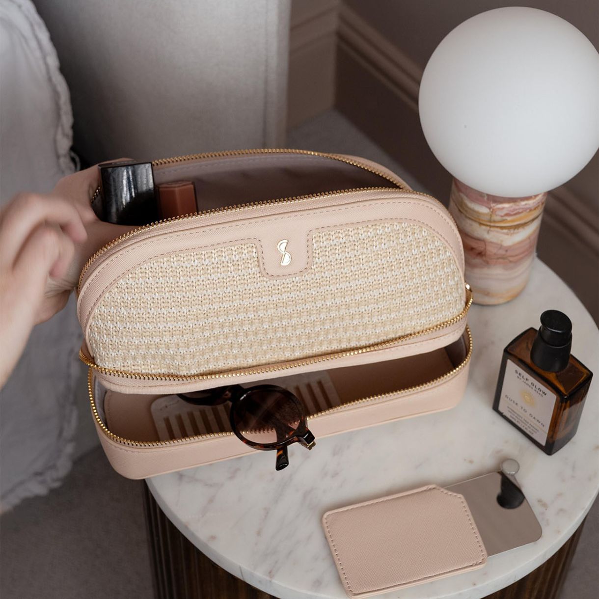 Несессерът Raffia е с две отделения, което го прави идеален за почивки и пътуване.