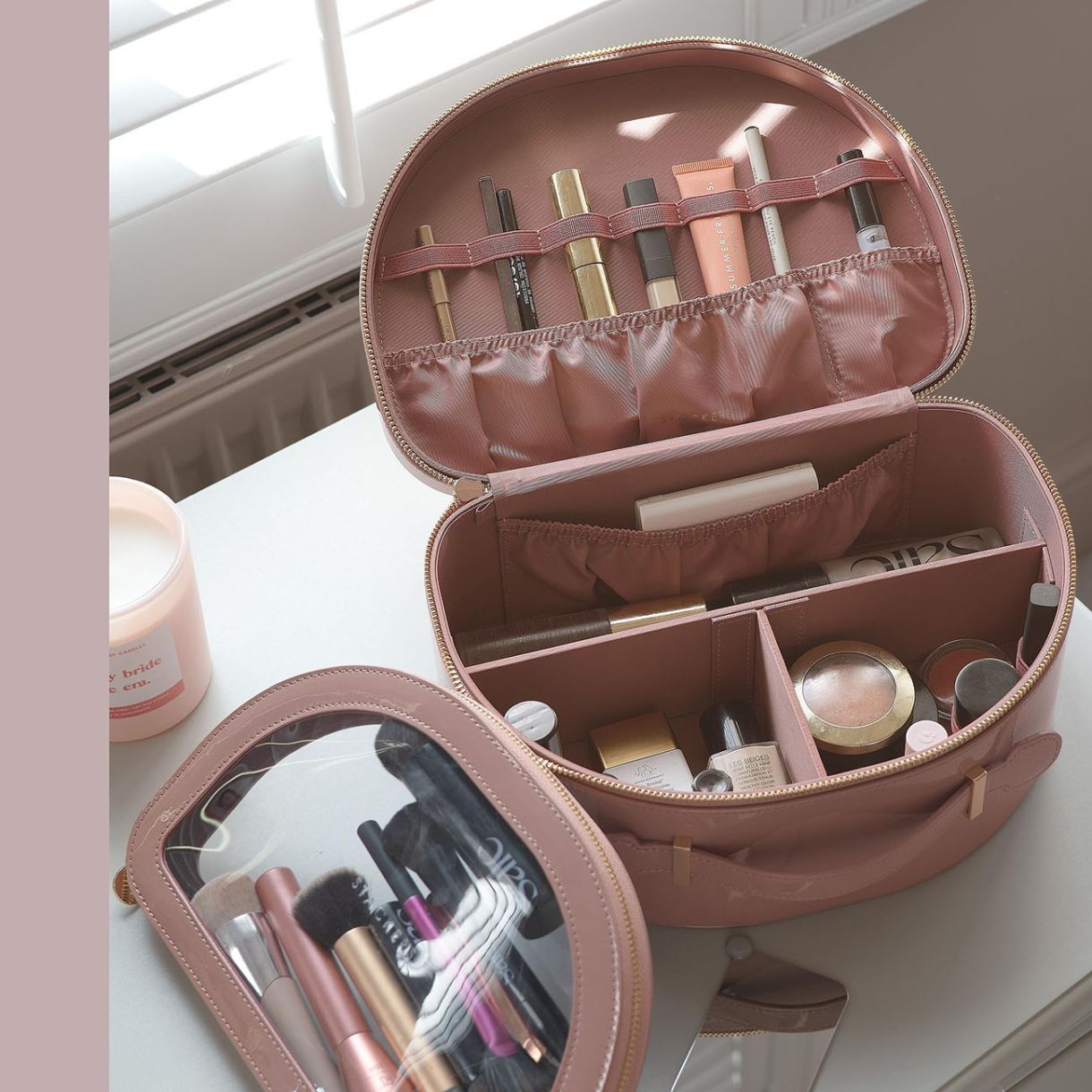 Несесерът включва множество вътрешни джобове и еластични примки за безопасно съхранение на козметични продукти. С подвижен прозрачен калъф, идеален за съхранение на четки за грим, отделно и чисто. Несесерът има вътрешни разделители, които ви помагат да организирате принадлежностите, огледало и подплата, която може да се почиства.