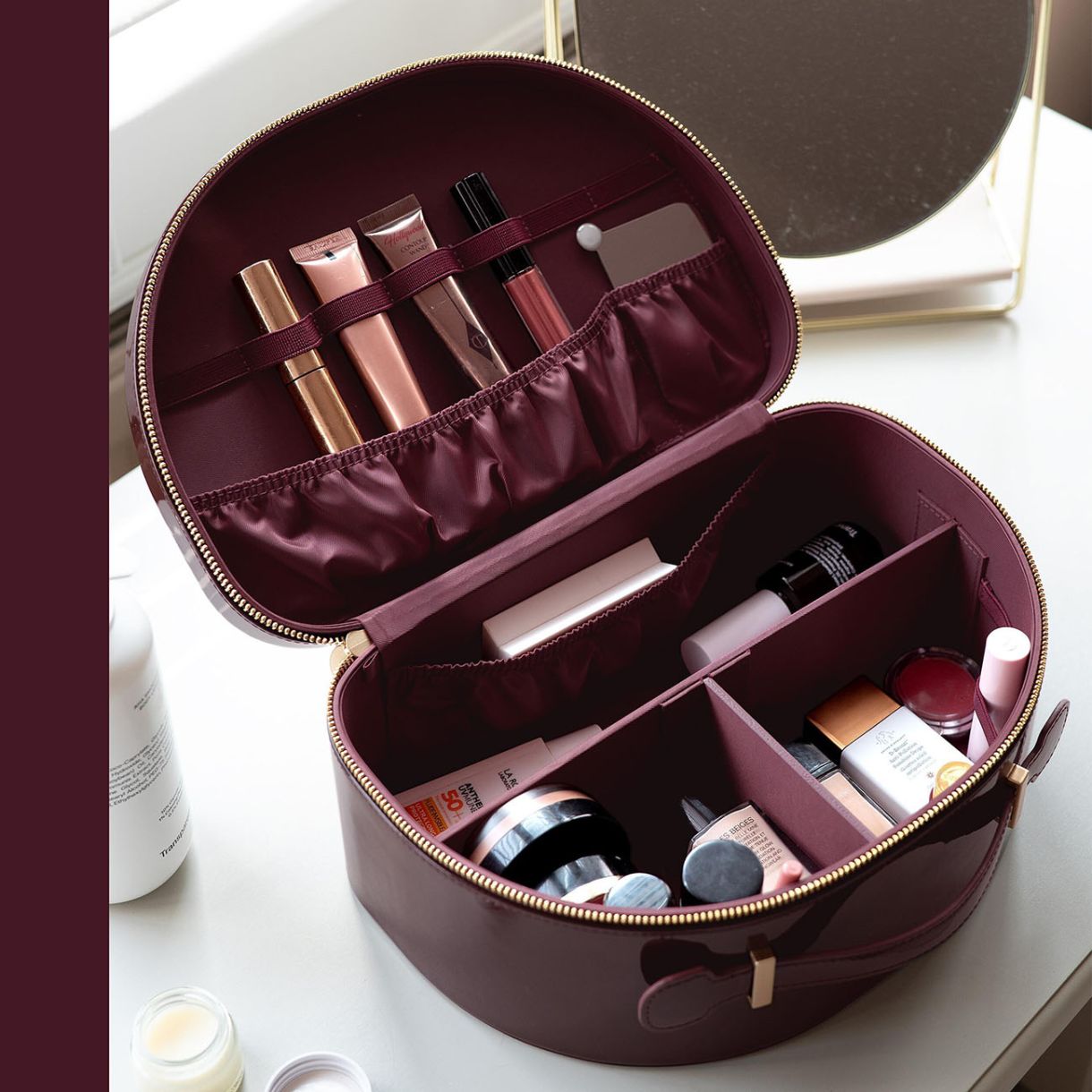 Дръжте тоалетката си организирана, като козметиката ви е спретнато затворена с цип, или използвайте дръжката за носене, за да я вземете лесно със себе си за пътуване.