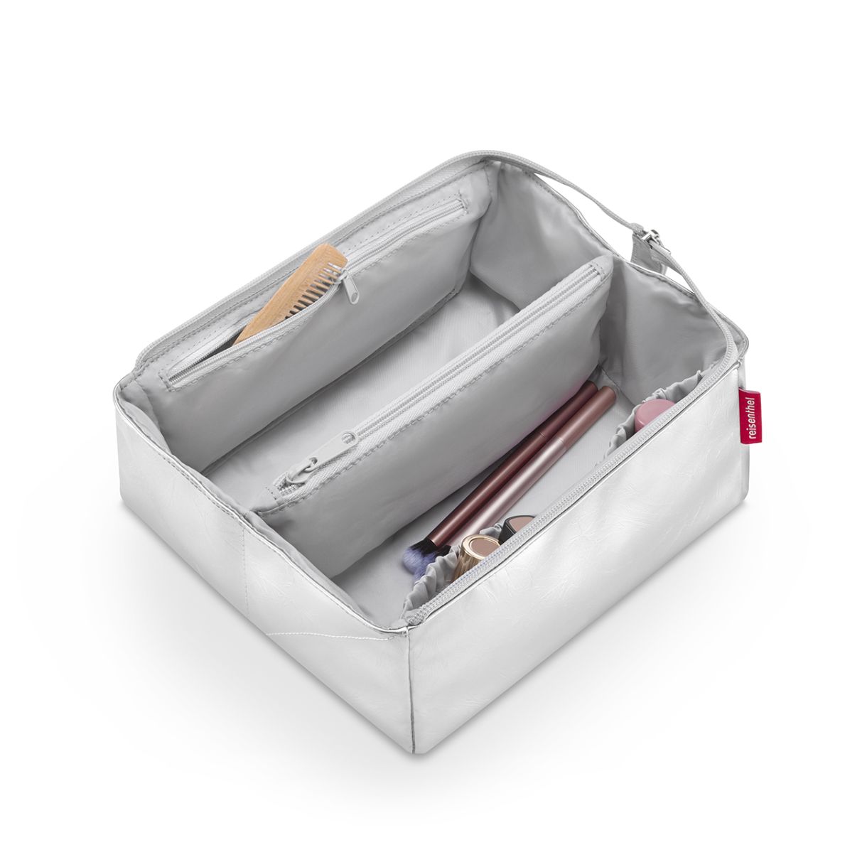 Уникална форма, интелигентни детайли (като дръжката с цип!): Сгъваем несесер с отделения с различни размери. Истински привличащ вниманието, който предлага много място за всички ваши любими козметични продукти. Независимо дали пътувате, у дома или във фитнеса: красив и практичен! Задължителен за всеки, който обича иновативния дизайн. И за любителите на красотата, разбира се.