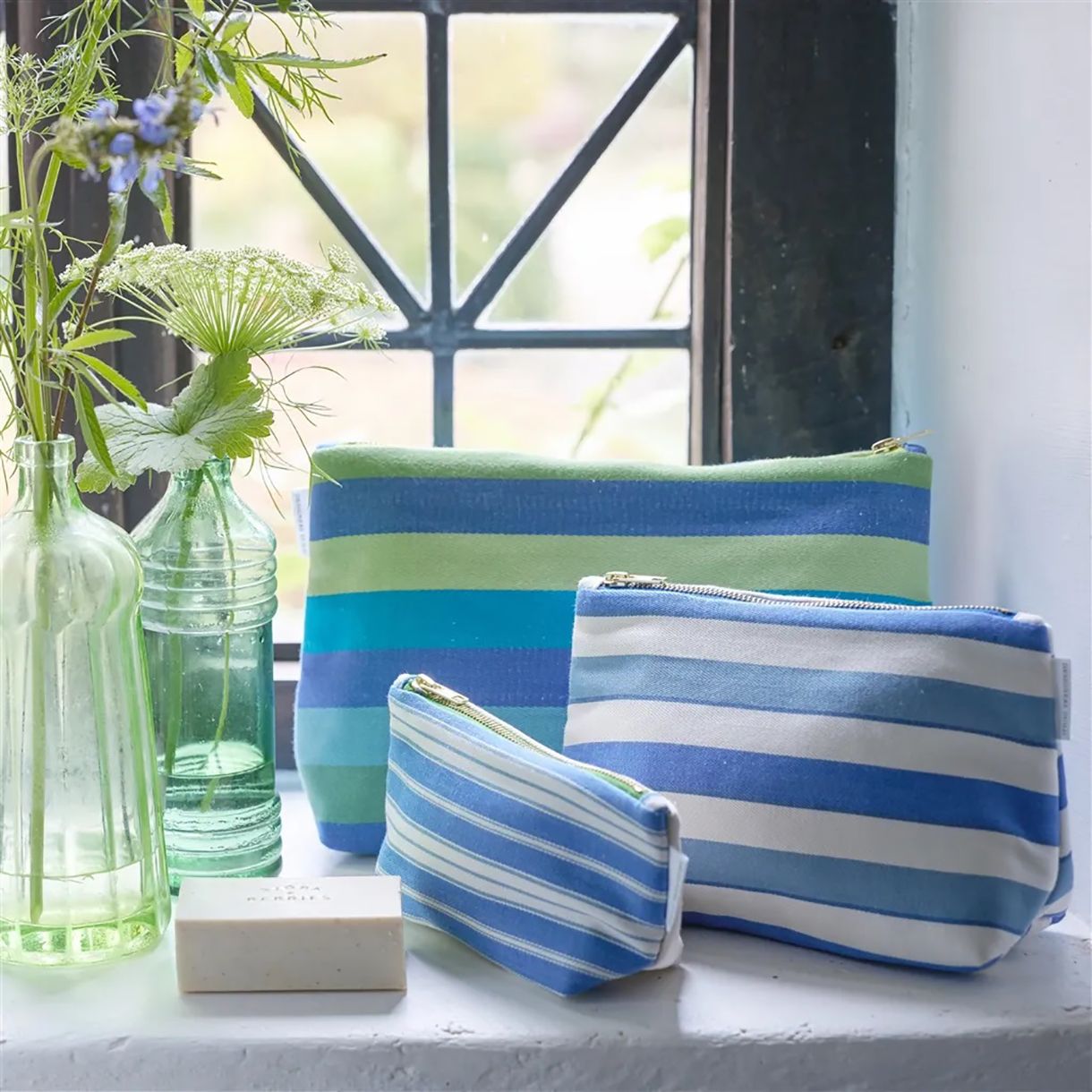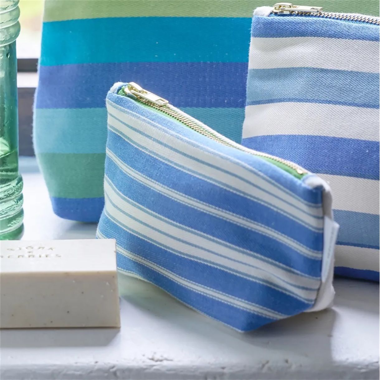 Добавете доза стил към Вашето пътуване с луксозния несесер Burlington Stripe от Designers Guild. Този практичен и същевременно елегантен аксесоар е изработен от здрав памучен плат с модерен десен на широки райета в наситено кобалтово синьо или розово. Вътрешната част е завършена с практична водоустойчива подплата и вътрешен джоб, осигуряващи перфектна организация за Вашата козметика. Здравият метален цип и качествената изработка гарантират дълготрайна употреба. Burlington Stripe е идеалният спътник за всеки, който цени съчетанието между функционалност и изтънчен дизайнерски стил.