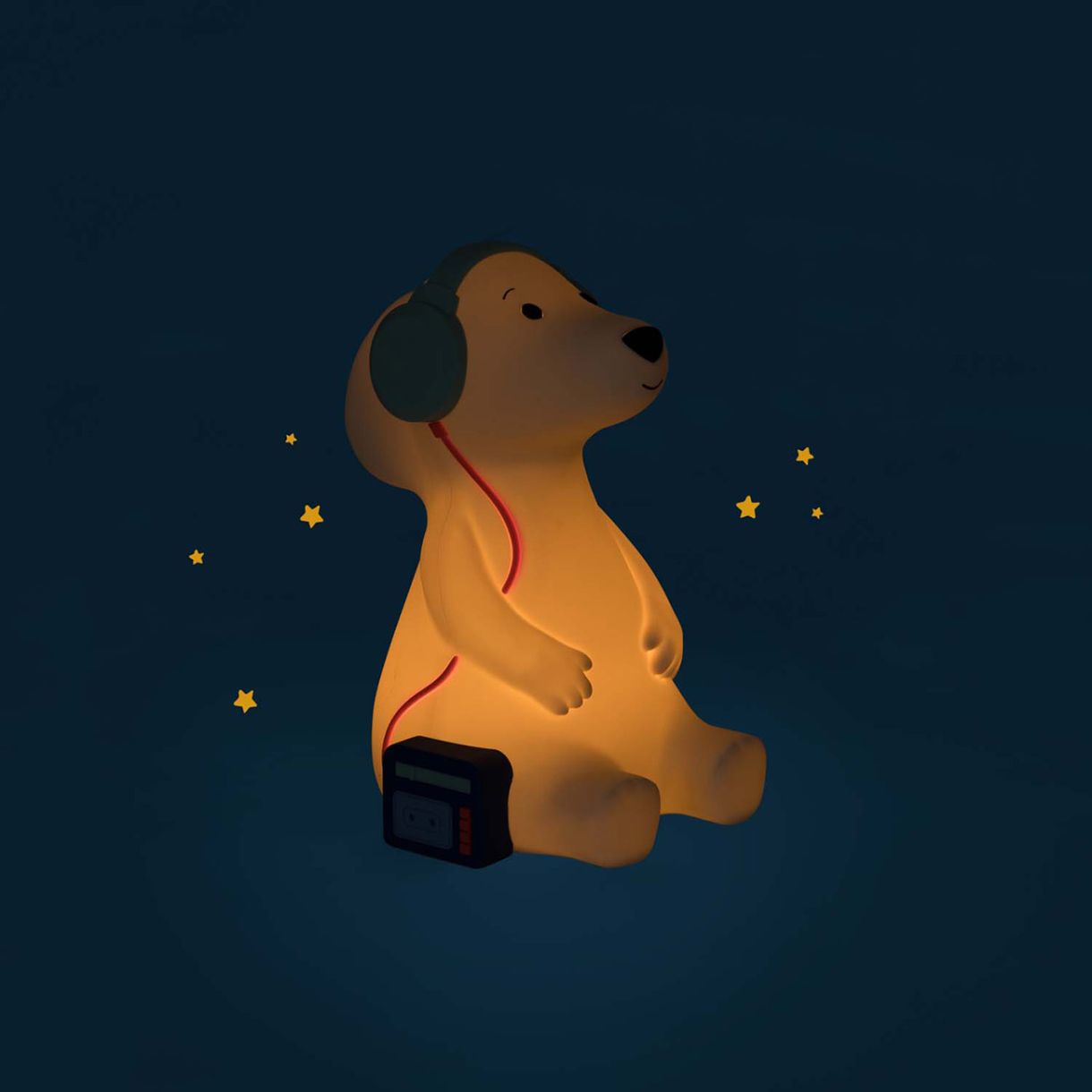 Силиконова нощна лампа куче без съдържание на BPA с регулатор на яркостта (3 нива). Осигурява успокояващо сияние в спалнята на бебето след стъмване и красиво украсява стаята през деня! Подвижен LED модул. Включен USB-C кабел.