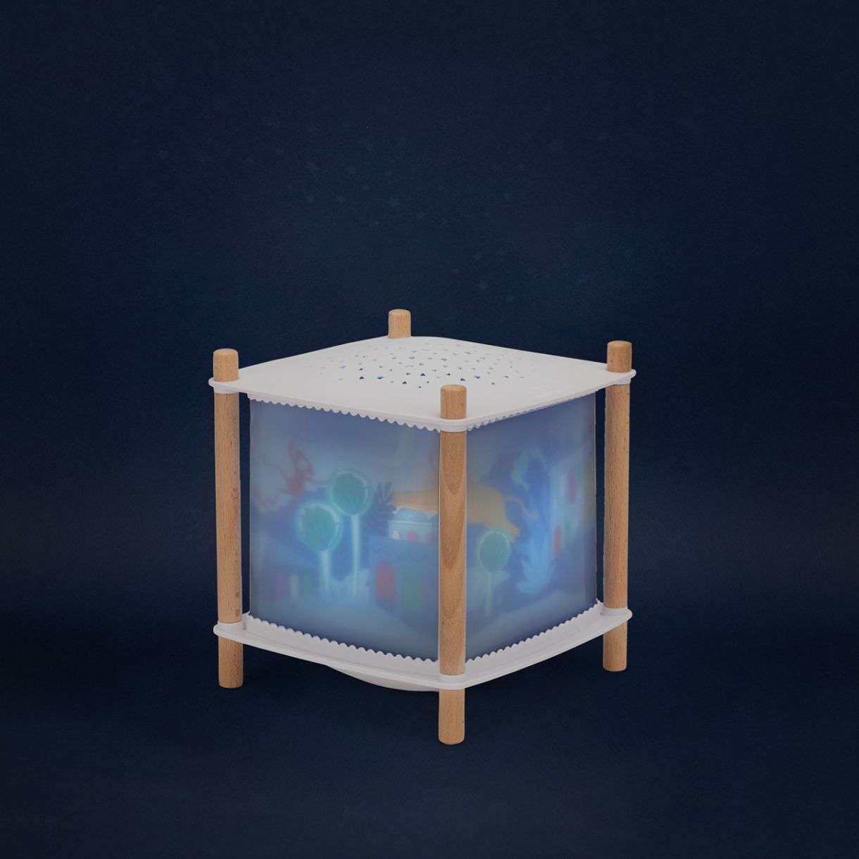 Потопете се в спокойна нощна атмосфера и „плавайте“ из заспалия град заедно с приятелите от джунглата с магическата свързана лампа от колекцията гората Мава на Moulin Roty. Тази мултифункционална нощна лампа 2.0 съчетава нежна светлина, музика и интелигентни функции, които помагат на бебето да заспи спокойно. Тя прожектира звезди, възпроизвежда приспивни мелодии, свързва се безжично и дори разпознава плача, за да се включи автоматично.