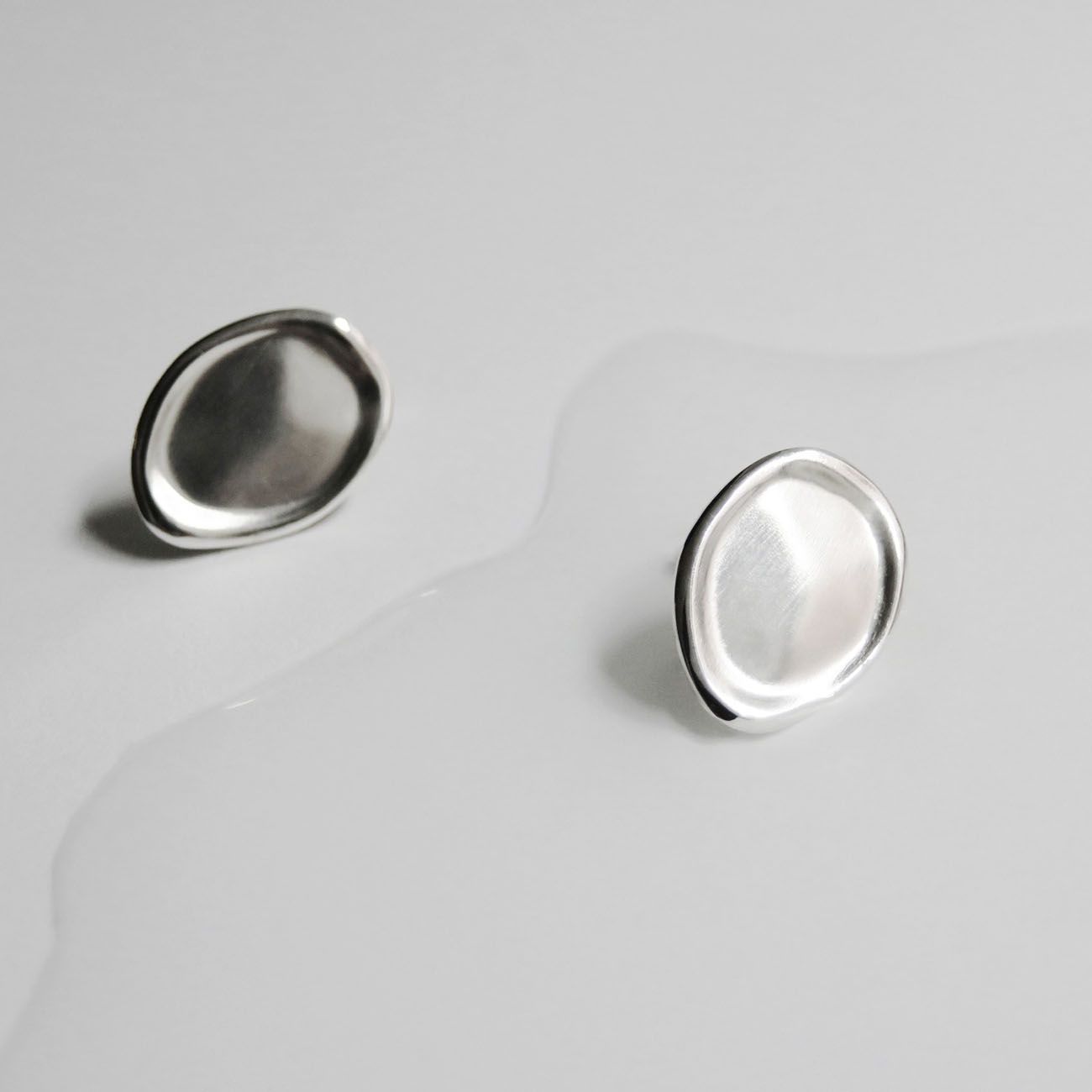 Големи сребърни обеци с меки форми и фини контрасти, вдъхновени от заливите на Коста Брава. Изработени от стерлингово сребро 925. Закопчаване тип „пеперуда“.(клипс)