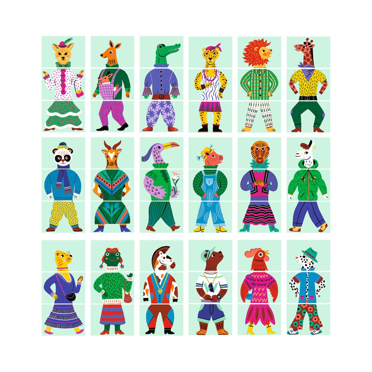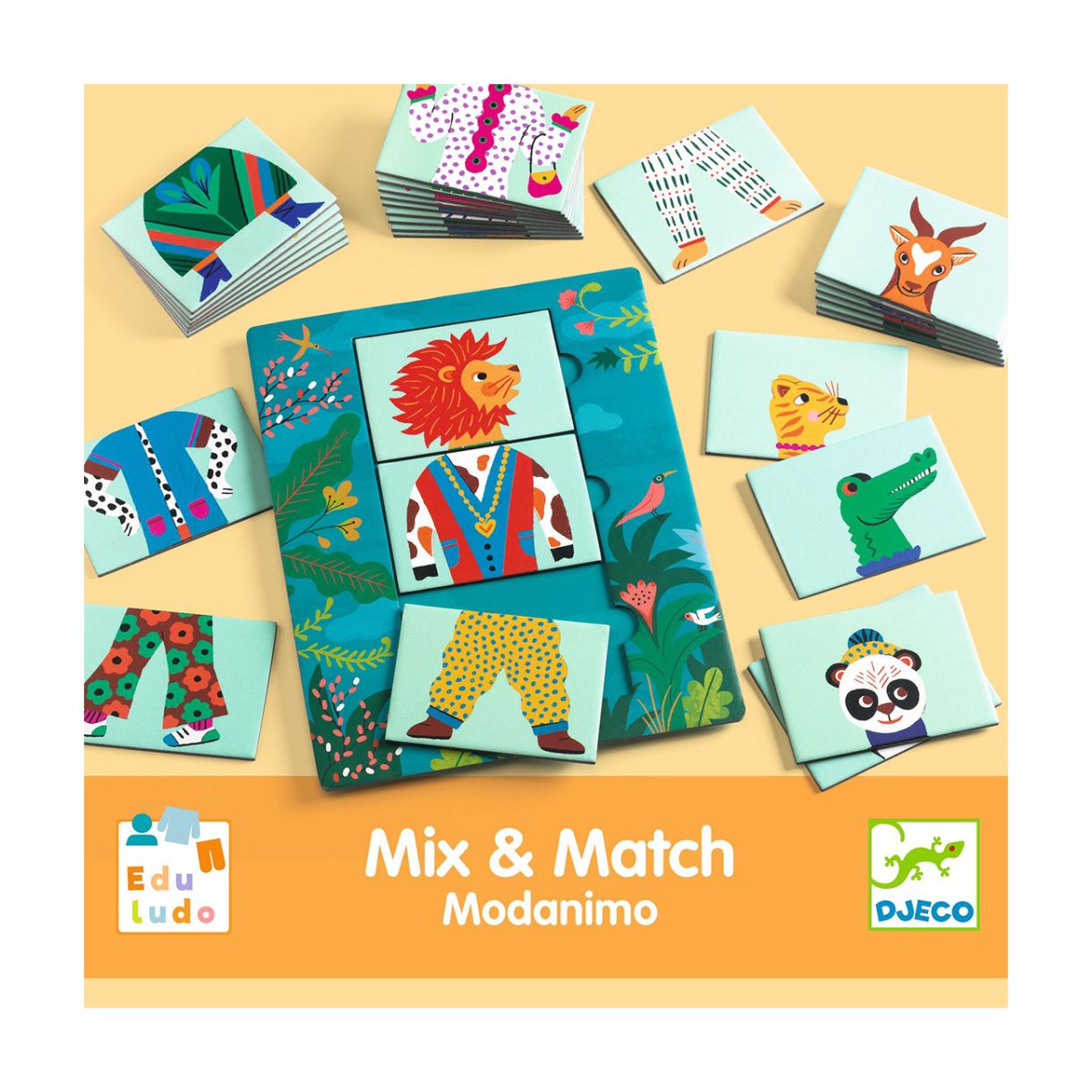 Създайте забавни и щури животни с играта Съчетай и съвпадни - мода за животни! Тази образователна игра е забавно и креативно преживяване, при което децата смесват и съчетават глави, тела и крака на животни, за да създадат весели и уникални създания.Съдържание: