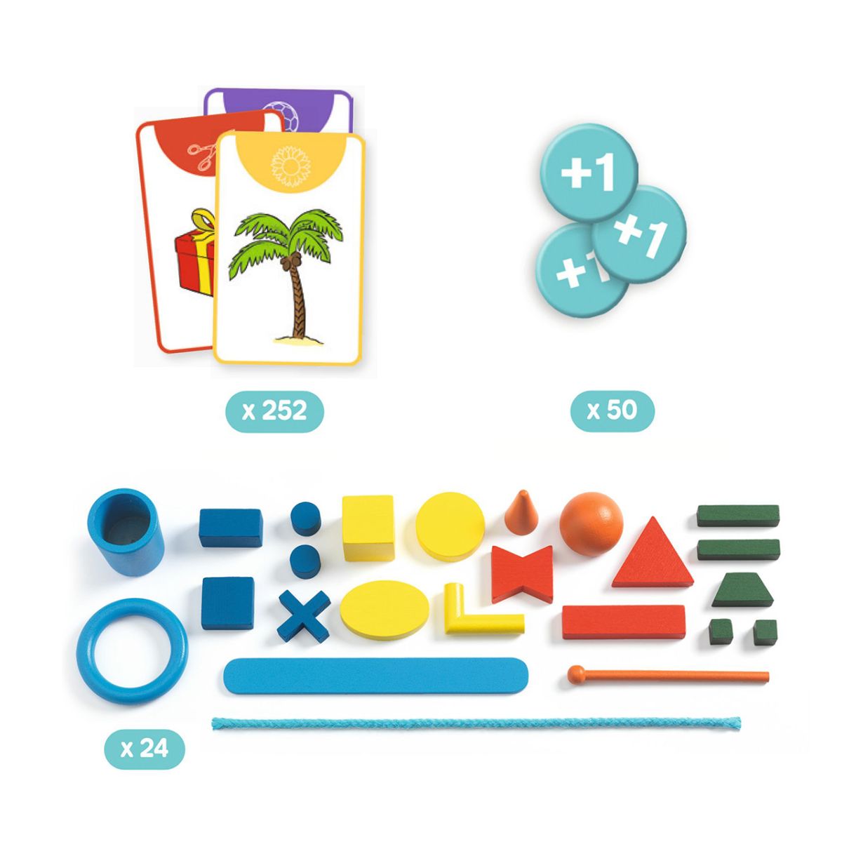 Накарайте другите играчи да познаят различни елементи (животни, предмети, растения...), използвайки различни дървени форми и парче връв. Въображението ви ще бъде постоянно подлагано на изпитание и всеки рунд обещава своя дял от изненади.
