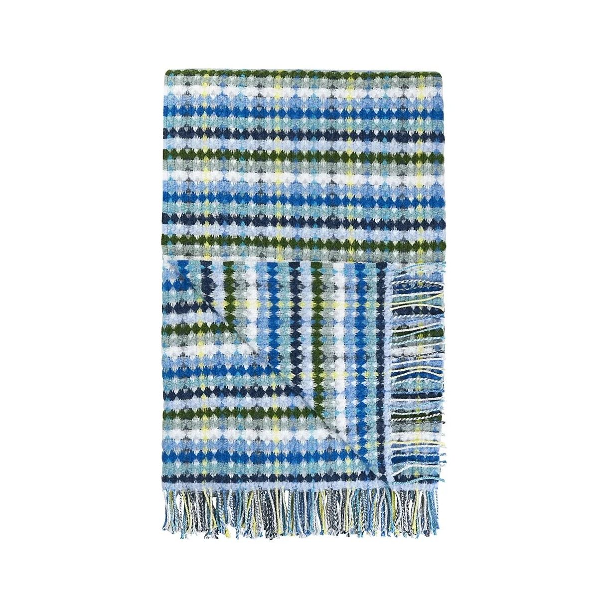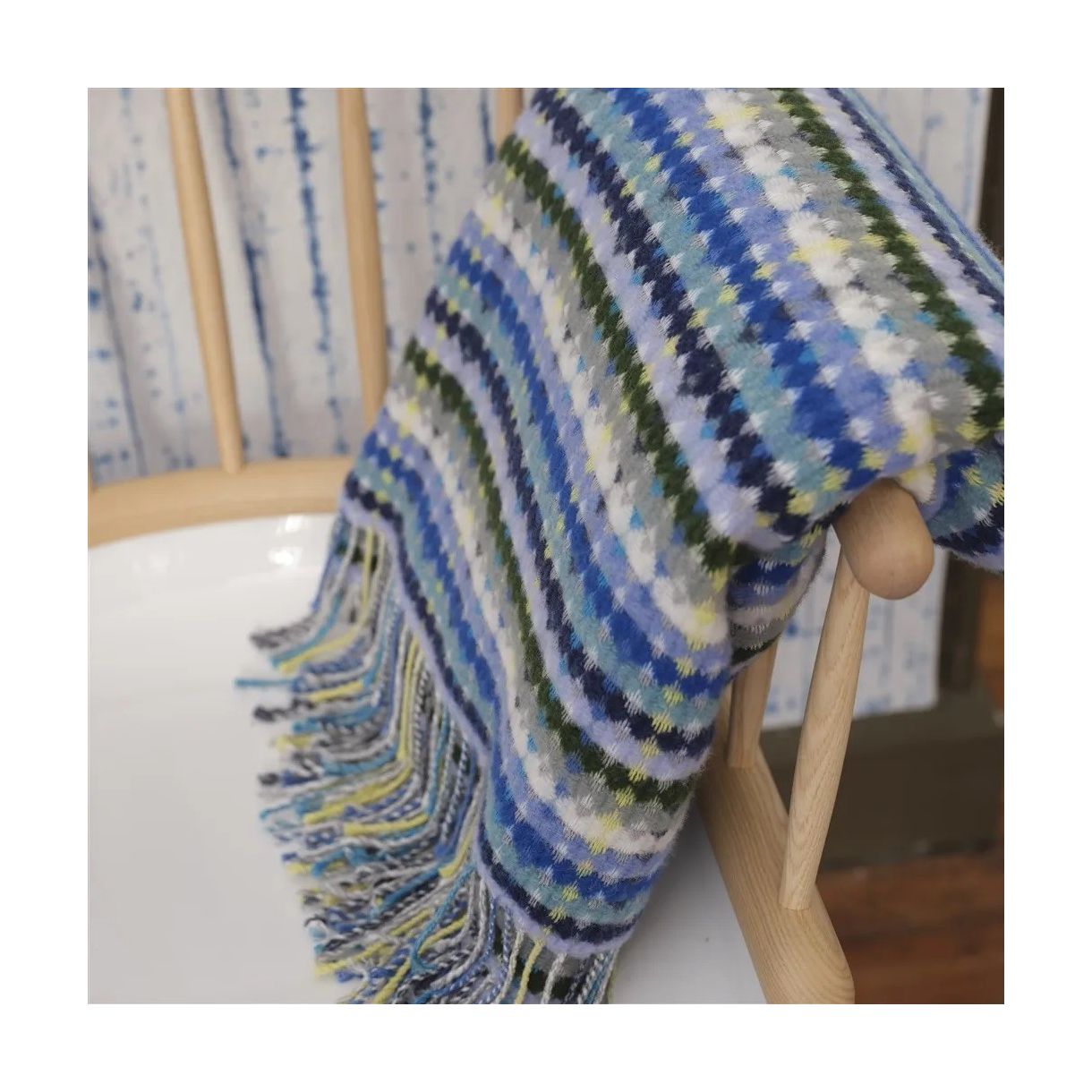 Вдъхновен от една от любимите ни тъкани на тапицерия, това многоцветно одеало е изтъкано от плътна, богата на вълна мека прежда.  Богата на цвят и текстура. Завършен с ръб с ресни.