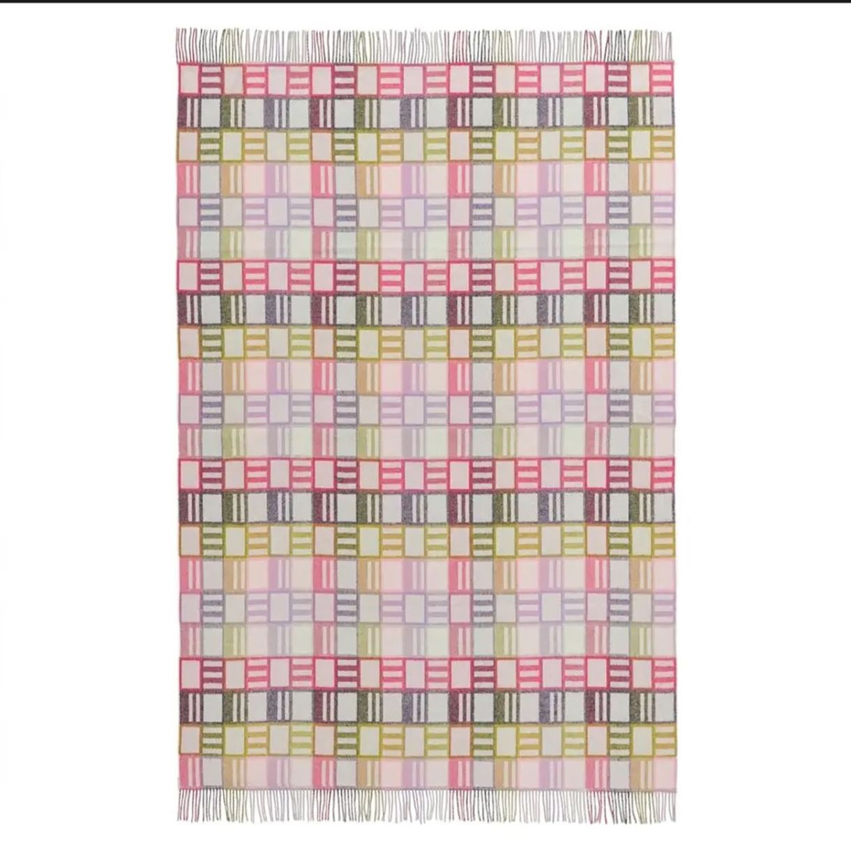 Мотивът е вдъхновен от традиционна за  Йоркшир вълнени одеяла, стилен, графичен. В меки неутрални тонове. Създадена от 100% чиста мериносова вълна и завършена с ресни.