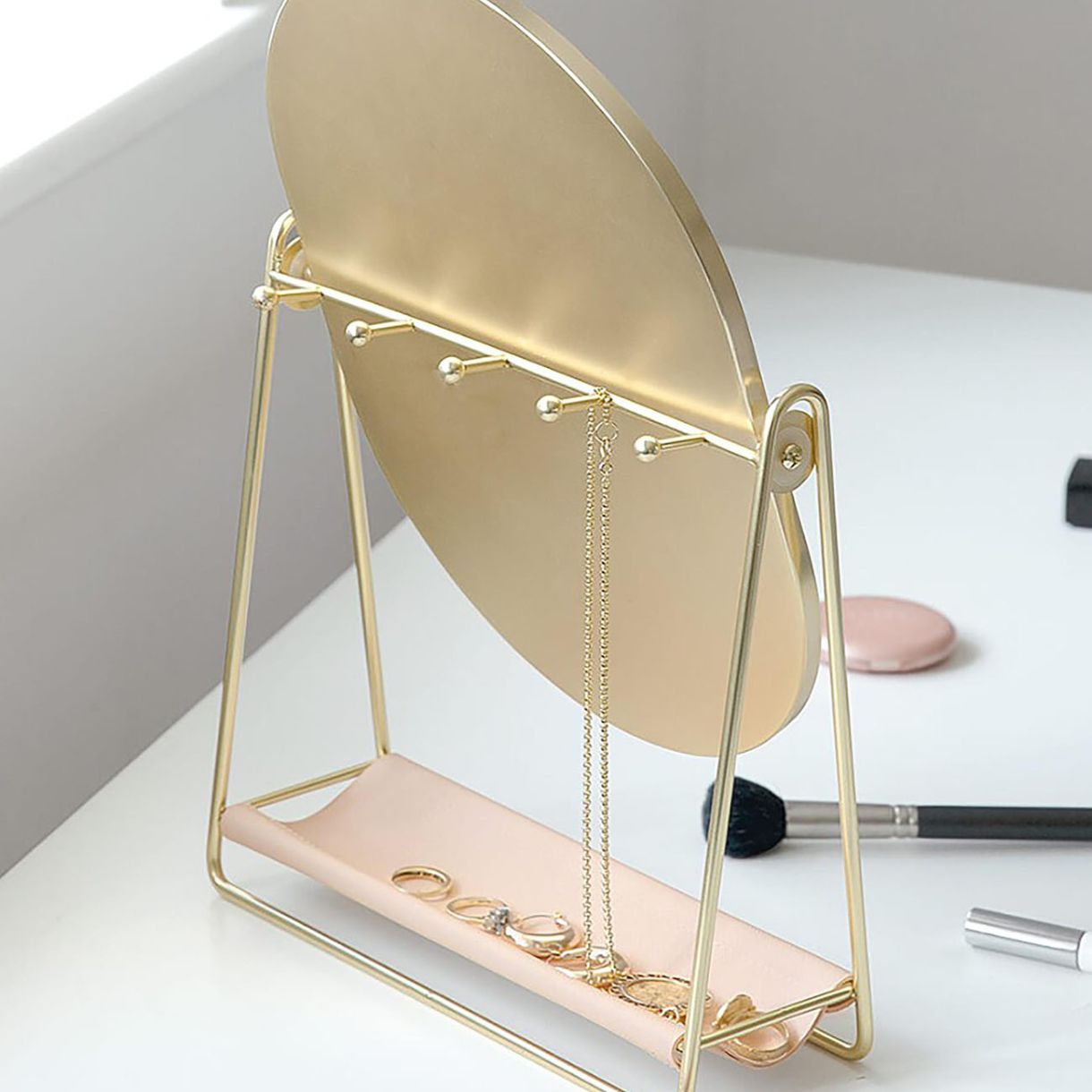 Добавете завършек към перфектната си тоалетка с огледалото и стойката за бижута за тоалетка.