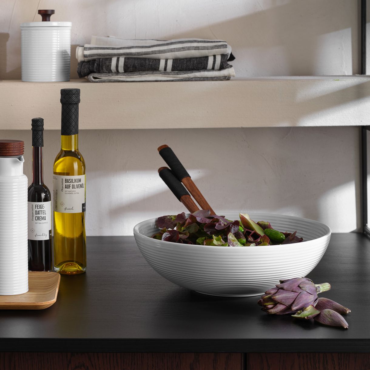 Колекция kitchen'art включва основите за всяка модерна кухня: бутилки за олио и оцет, мелнички за сол и пипер, съдове за масло и буркани, които са не само идеално пригодени за съвременните готварски и кухненски нужди, но също така изглеждат добре и на масата.