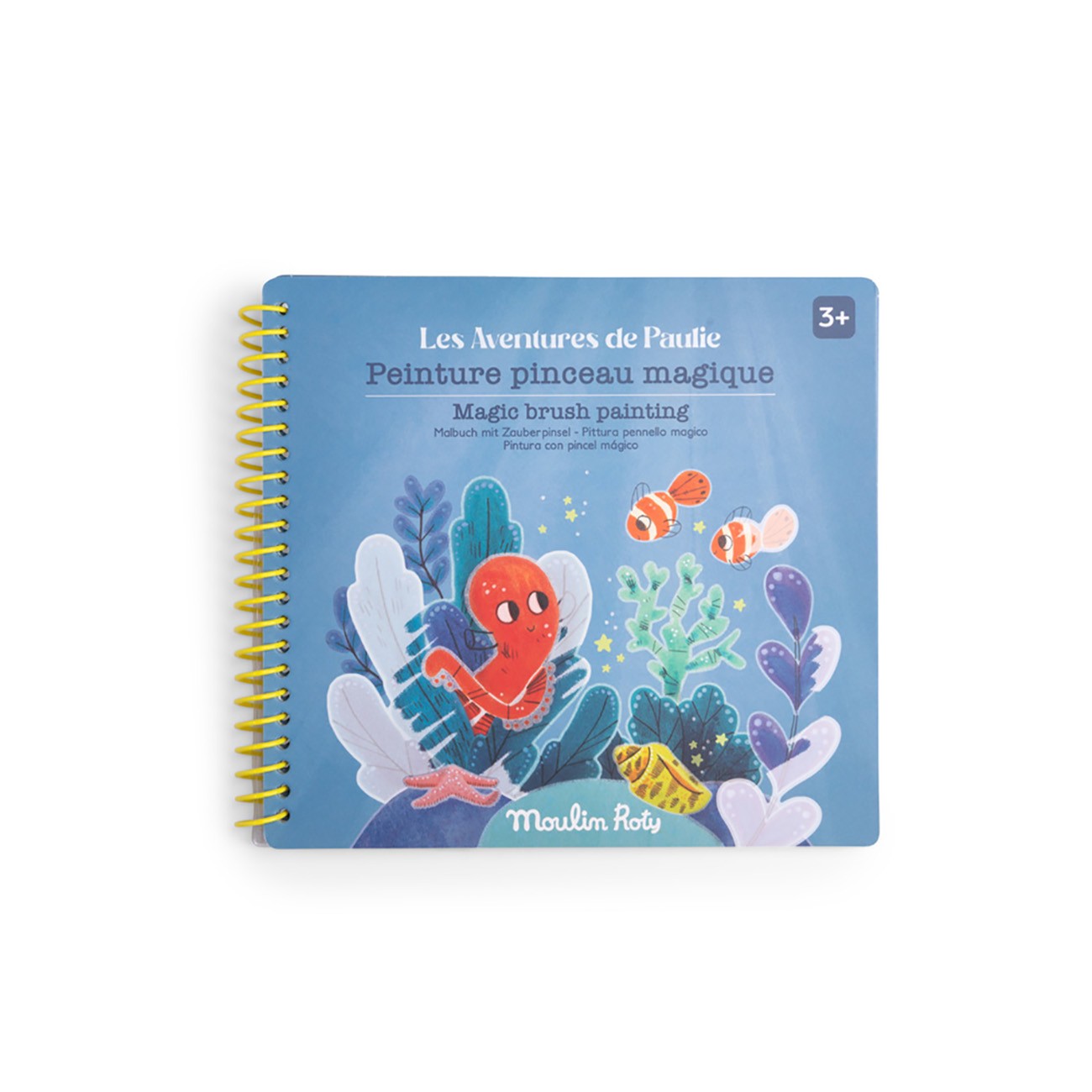 С помощта на магическа четка с резервоар за вода нарисувайте белите полета на всяка страница, за да накарате илюстрациите на октопода Поли и неговите приятели да се появят магически! За многократна употреба, рисунките се появяват и изчезват, след като изсъхнат!