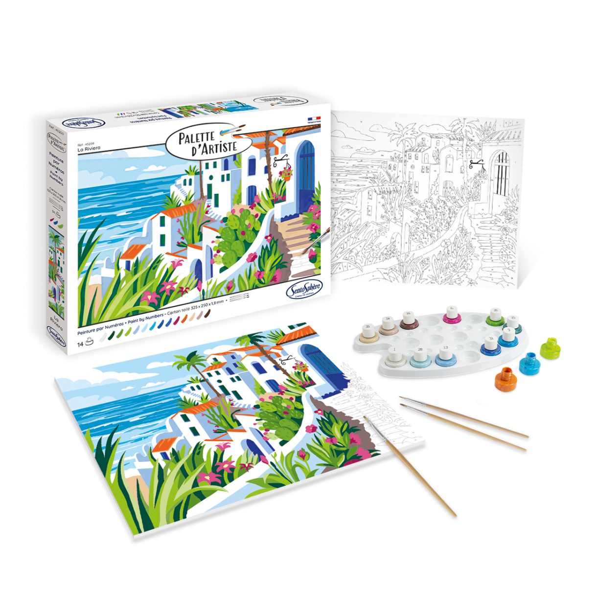 Произведена във Франция, Palette d’Artiste съчетава качество, достъпност и забавление за всеки, който търси бягство в света на рисуването. Освободете ума си и оставете числата и цветовете да ви водят през цялото време.