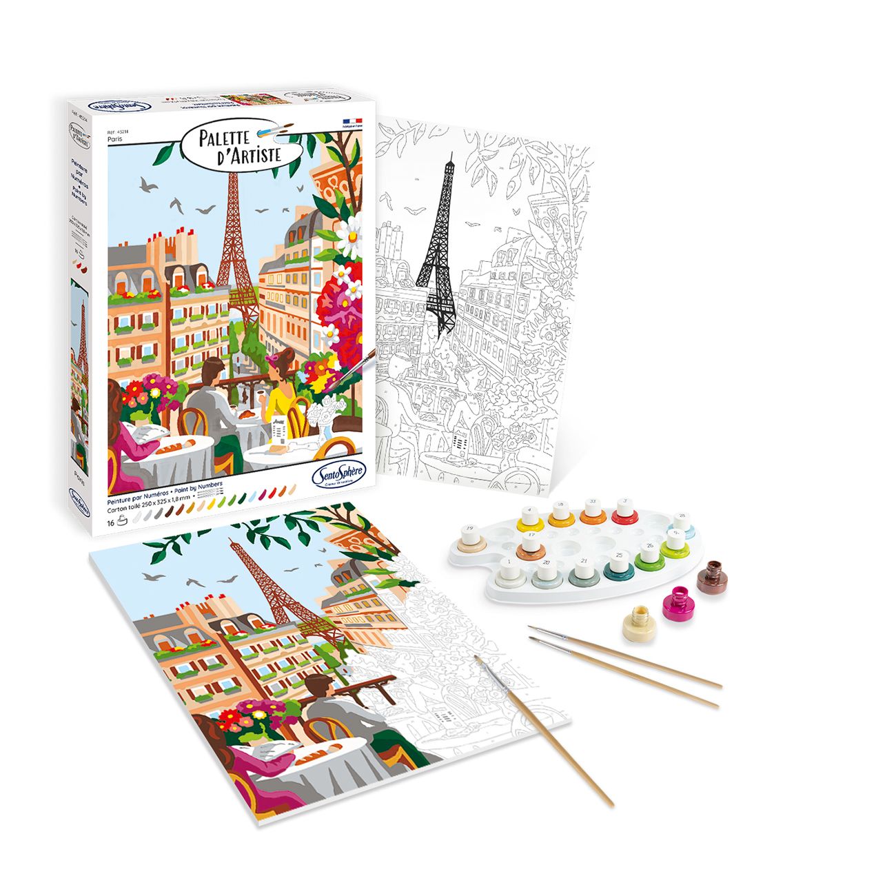 Произведена във Франция, Palette d’Artiste съчетава качество, достъпност и забавление за всеки, който търси бягство в света на рисуването. Освободете ума си и оставете числата и цветовете да ви водят през цялото време.