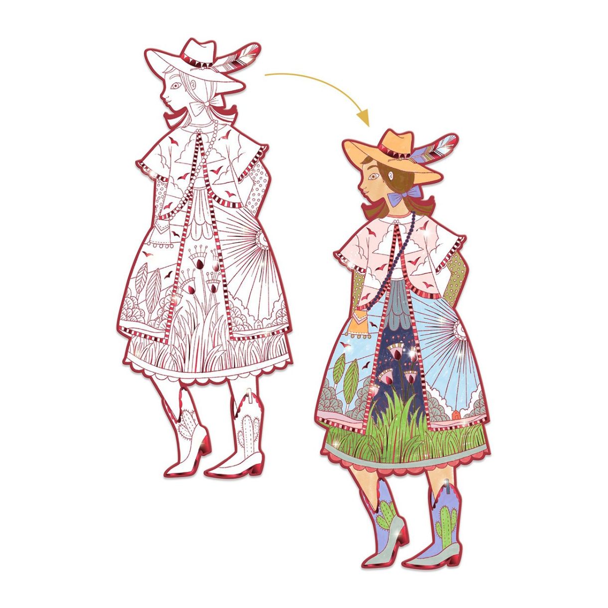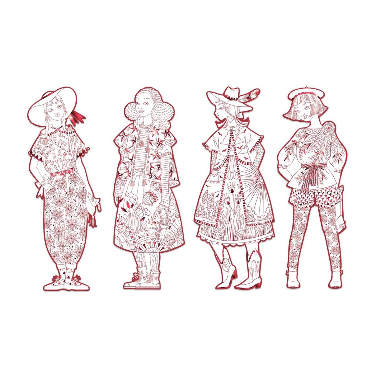 - 4 кукли за оцветяване, украсени с лъскави зони