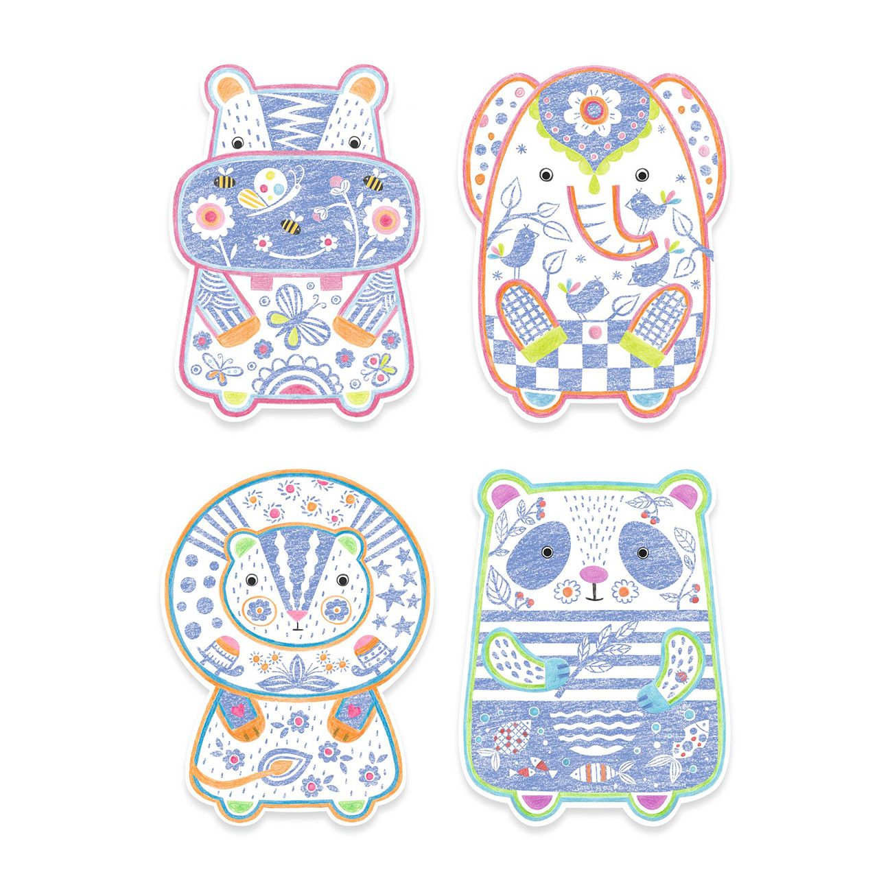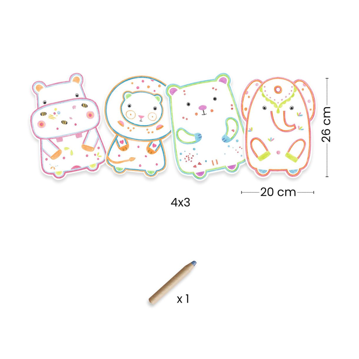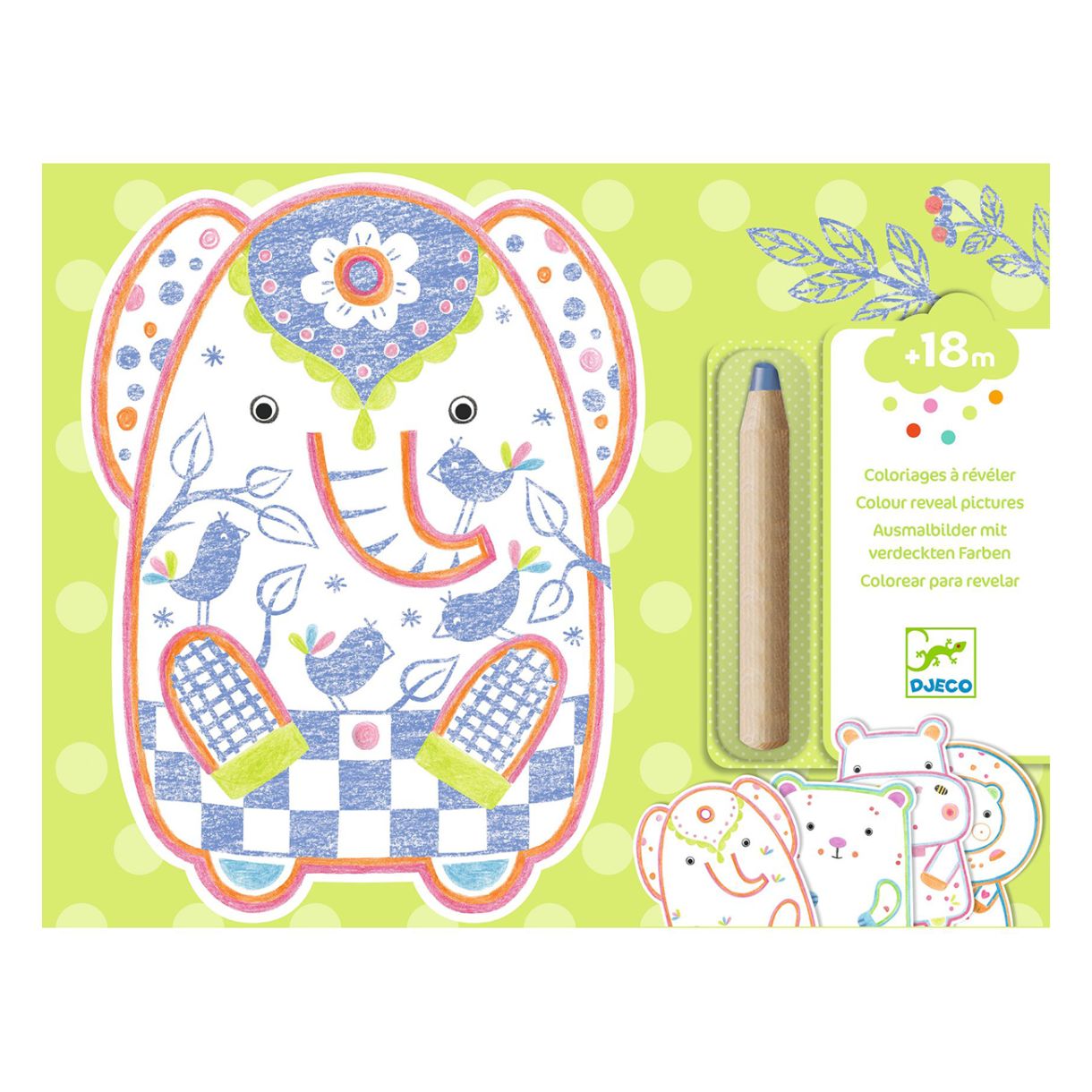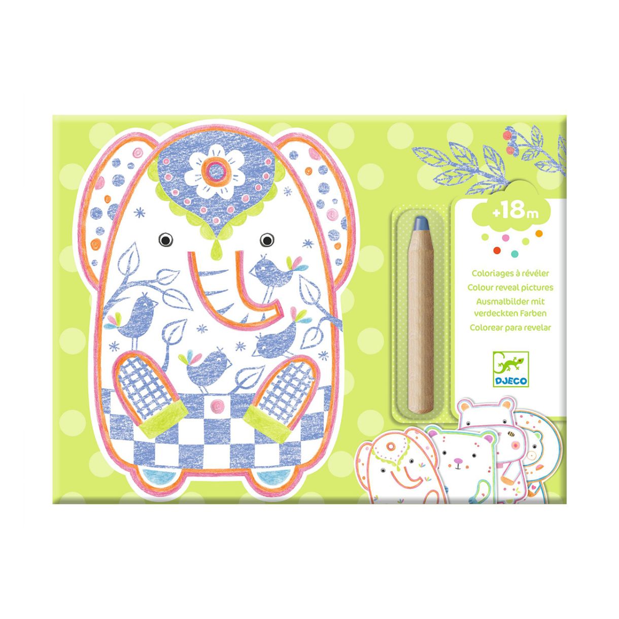 Джоб с 12 картини за оцветяване с джъмбо цветен молив, идеален за най-малките. Оцветете горските животни, като използвате молива, за да разкриете какво е скрито. Това е магия: моливът маркира само определени области, разкривайки модели и изненади!