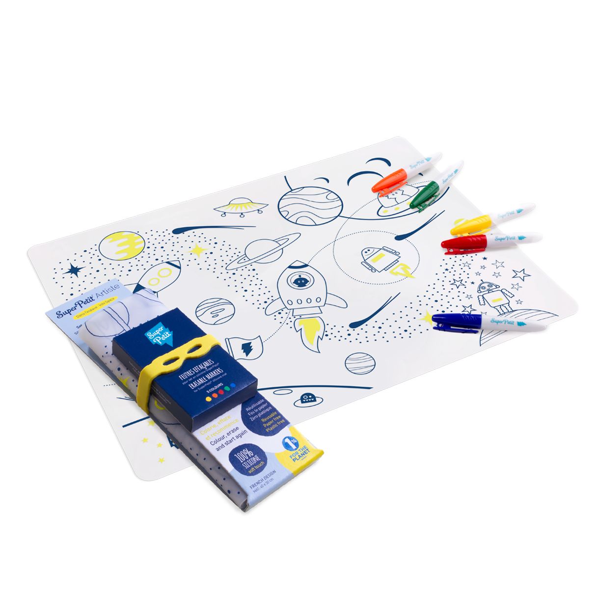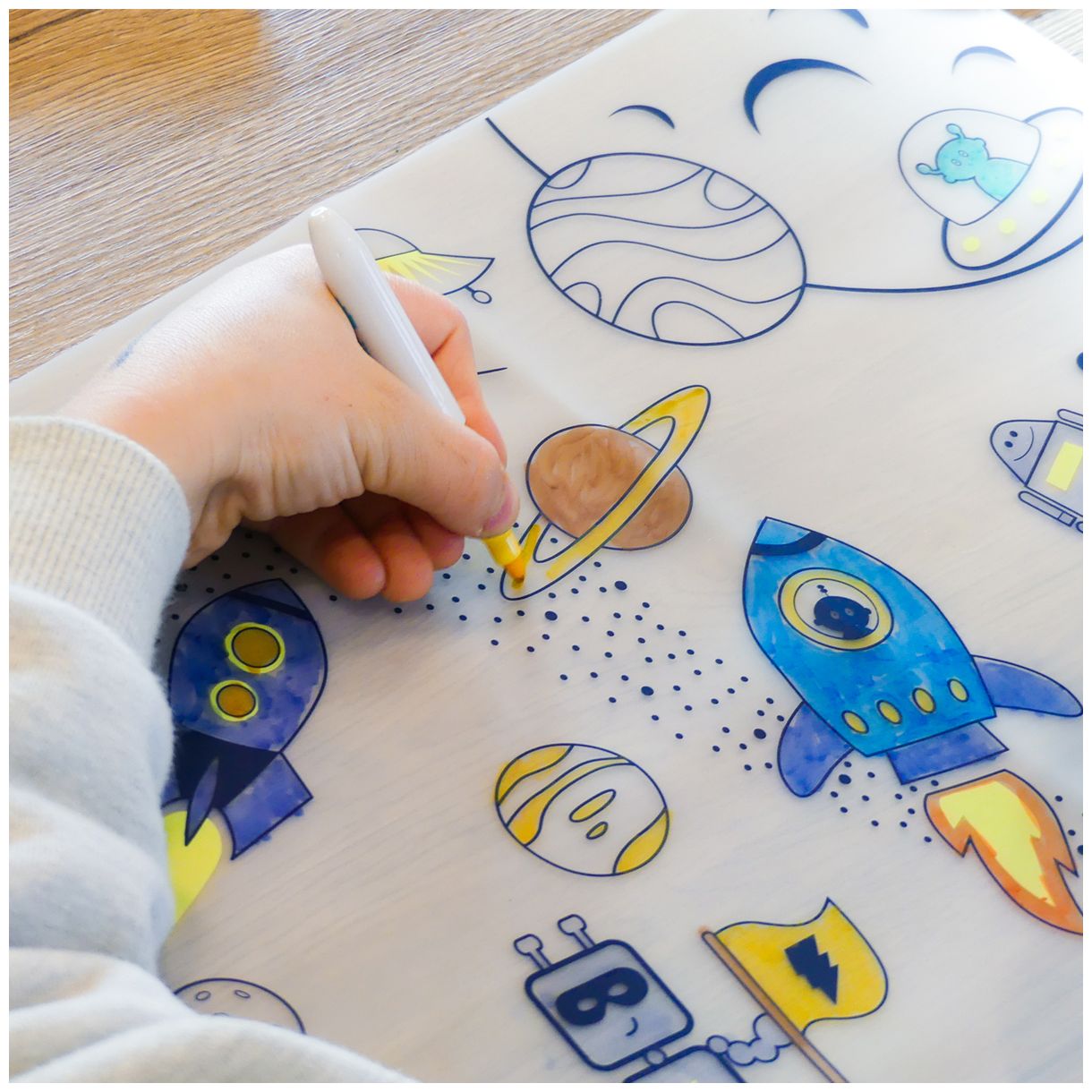 Многократна силиконова подложка за оцветяване, която позволява на децата да рисуват, изтриват и започват отново. Гъвкава, лека и лесна за пренасяне, тя е идеална за забавление у дома или по време на пътуване. Изработена от безопасен силикон, подложката стимулира въображението и креативността, като предлага игра без екрани.