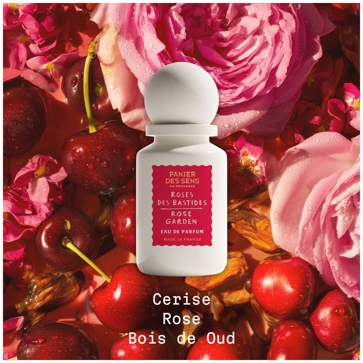 Парфюмът Roses des Bastides преосмисля розата Centifolia в интензивна и контрастна светлина, създавайки модерен флорален аромат за жени. Тази композиция съчетава обляни от слънцето плодове (череша, слива) с фини подправки (кардамон), преди да разкрие щедро и кадифено флорално сърце, доминирано от роза, виолетка и глог. Дървесната и кожена основа разчита на пачули и уд за чувствена сила и незабравима следа. Олфакторна пирамида: Връхни нотки: Череша, слива, кардамон; Сърдечни нотки: Роза Centifolia, виолетка, глог; Базови нотки: Уд, кожа, пачули