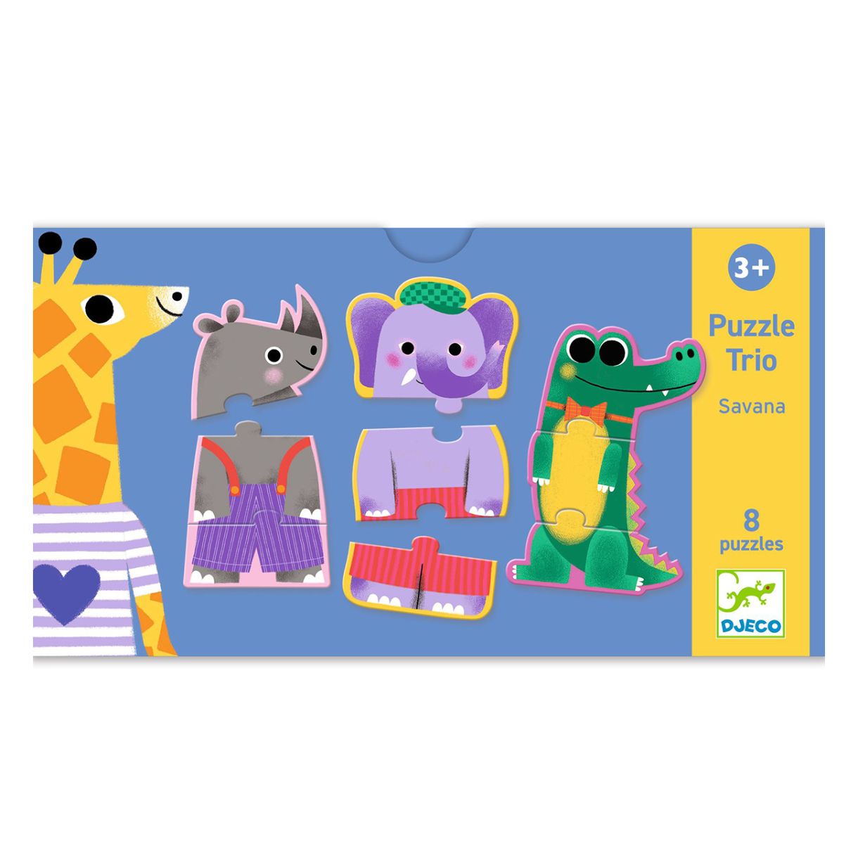 Пъзел трио Савана е образователен пъзел на тема животни за най-малките. Детето пресъздава животински силуети – вертикално!