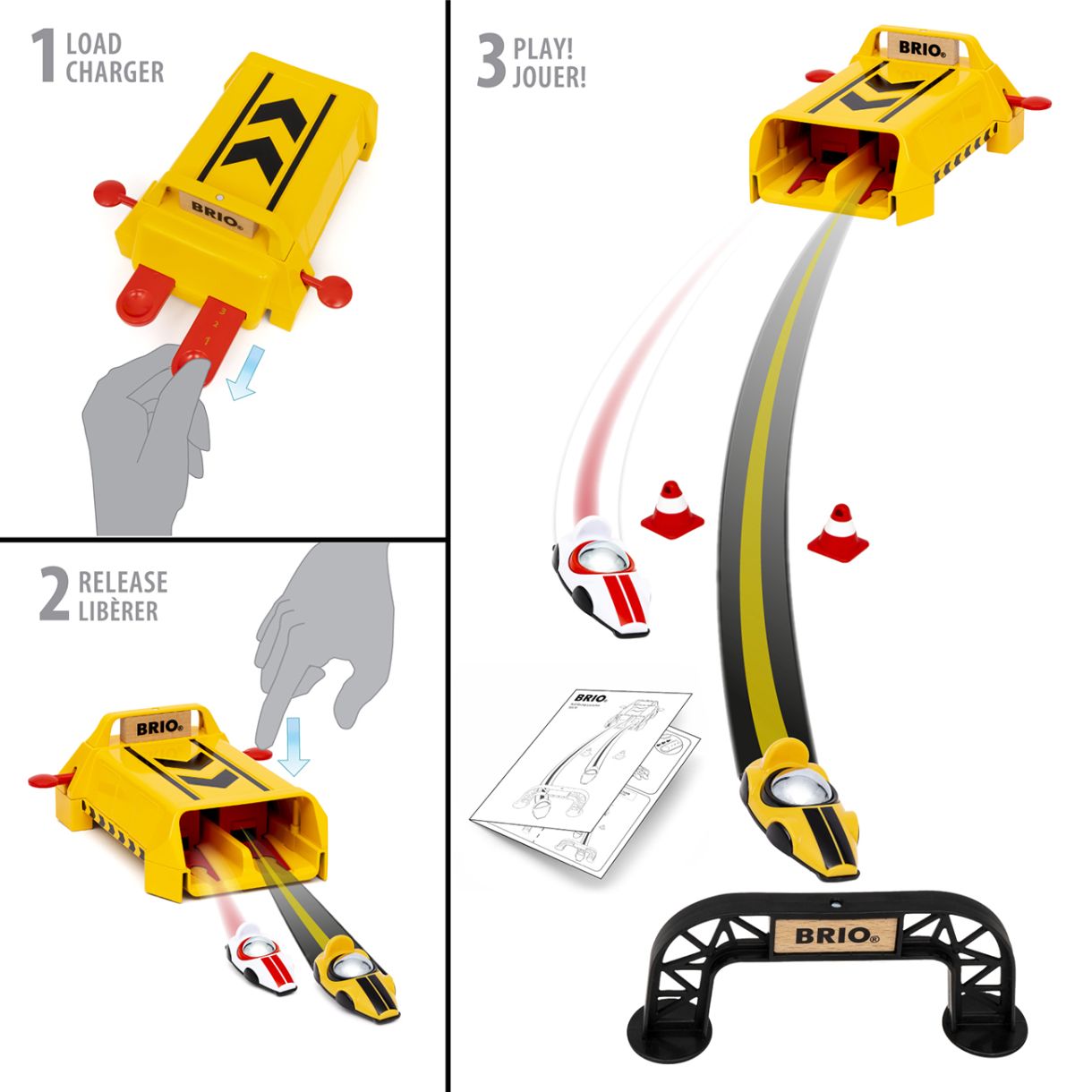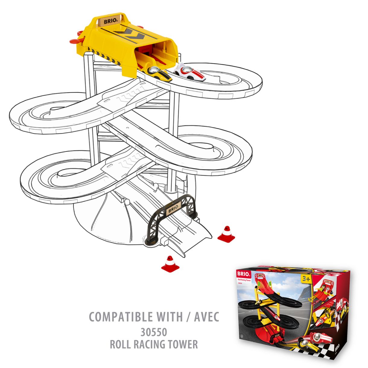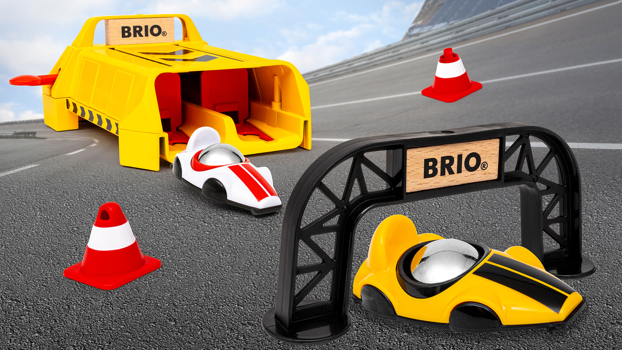 За BRIO Roll Racing: Този комплект за игра е част от серията Roll Racing - състезателен комплект за игра за деца на 3 години и по-големи, който се фокусира върху скоростта, гравитацията и височината. Топчетата с ниско триене в центъра на състезателните коли позволяват високоскоростни състезания с тесни завои и препятствия по пътя. Всяко състезание е различно, тъй като модулните системи на пистата дават възможност на детето да отговаря за дизайна на състезателната писта.