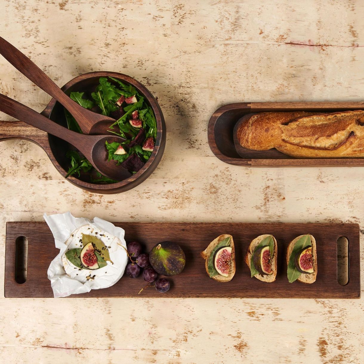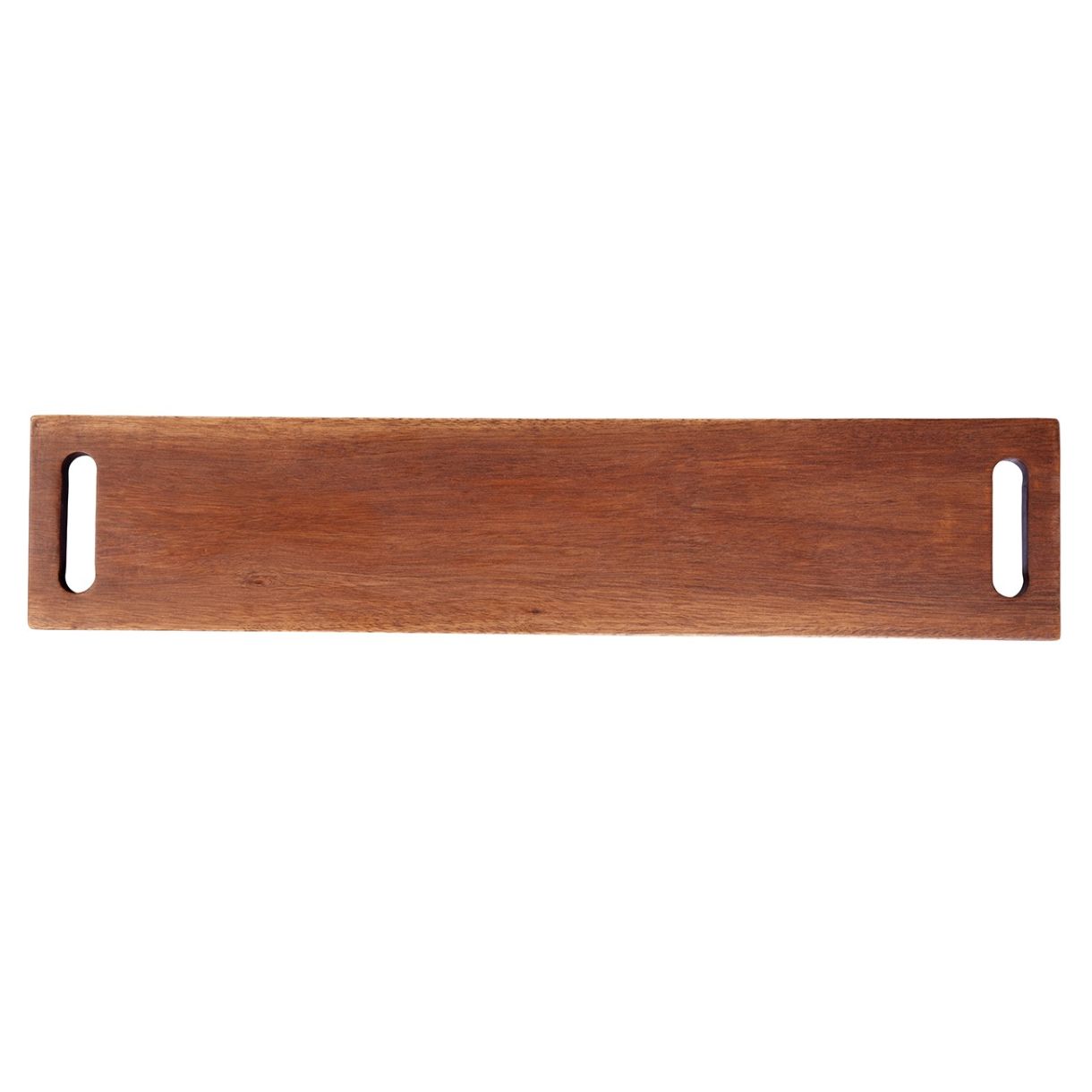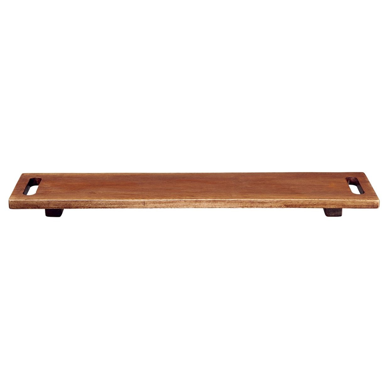 Голямо дървено плато на крачета от  ASA Selection. С дължина 60 см, ширина 13 см и височина 3 см, то предлага достатъчно място за вкусни багети, малки закуски, пресни плодове и специалитети със сирена и колбаси. Тъмнокафявият тон на акациевото дърво хармонира идеално с бял или цветен порцелан от другите колекции на ASA Selection.