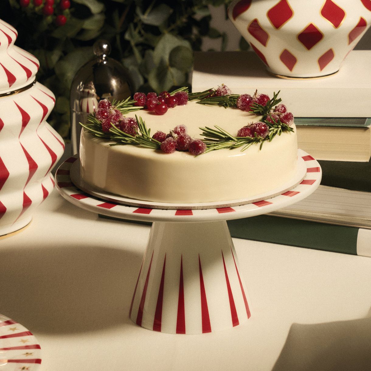 Поставката за торта Delight е очарователен порцеланов предмет, който подобрява представянето на десертите на масата. Ника Зупанц е проектирала комбинация от чисти, скулптурни първични форми, фино декорирани в традиционни коледни цветове. Върху основната повърхност корона от златни звезди се редува геометрично с червени заострени концентрични сегменти - същият мотив се повтаря и на основата, насочен нагоре, привличащ погледа към центъра на композицията.
