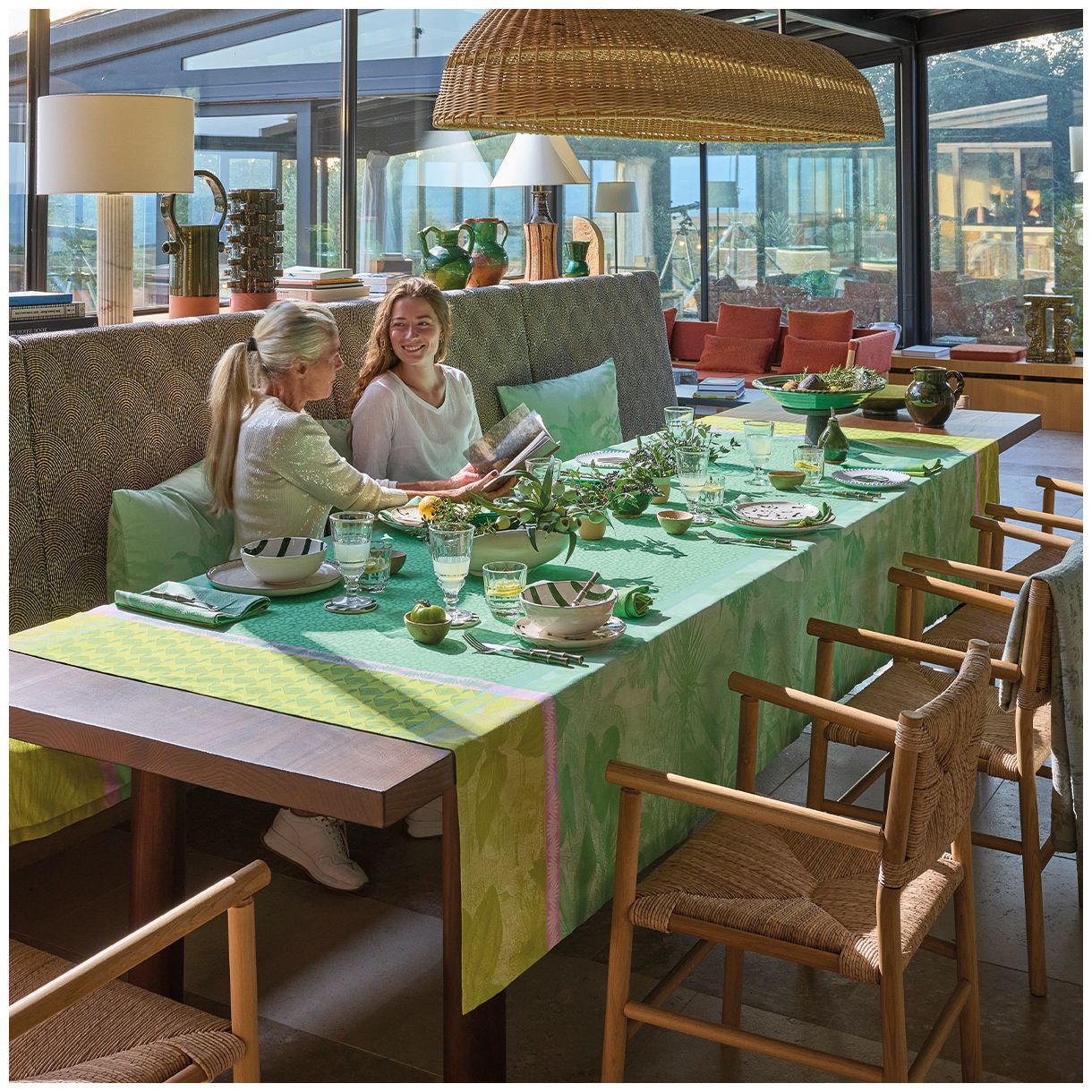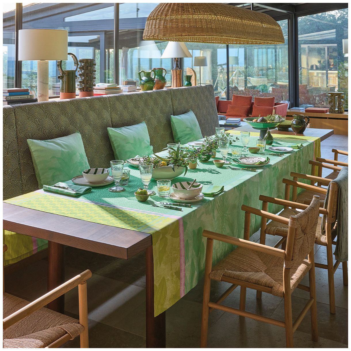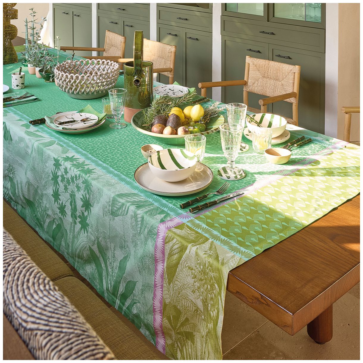 Покривка, която елегантно стои на масата, за да ви предложи изискана вселена в сърцето на вашия дом. Проектирана и за употреба на открито, за да внесе нотка цвят на вашата тераса, балкон или в градината.  Устойчива на слънце, водоустойчива и лесна за поддръжка!