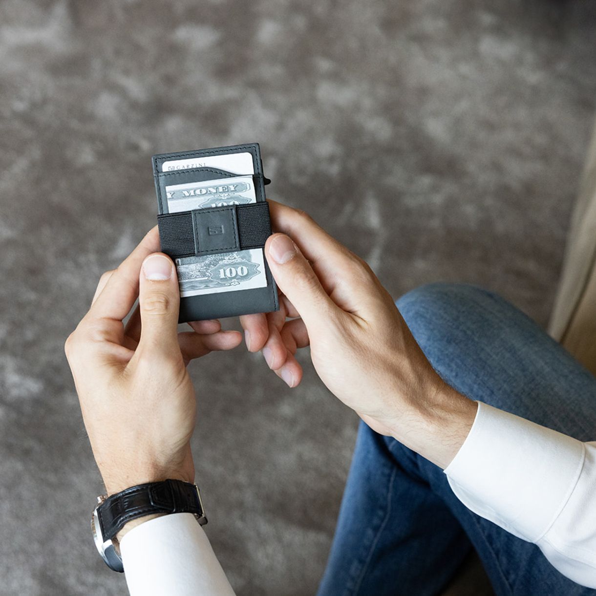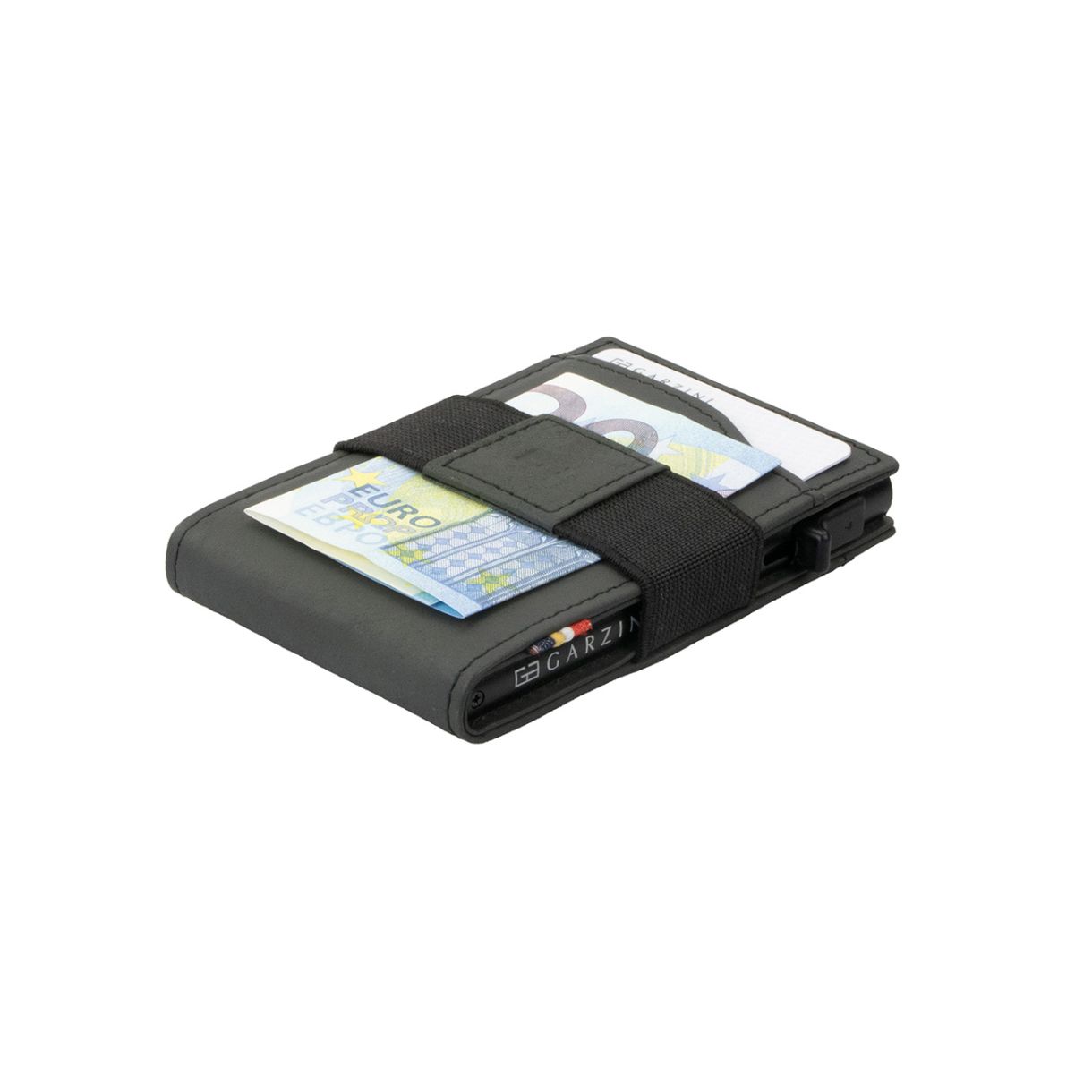 Тънкият портфейл за карти Garzini има прозрачен джоб за лична карта, който съчетава елегантен дизайн с практична функционалност. С вграден здрав метален картодържател, RFID защита и бутон за бърз достъп, той е създаден за безпроблемна и сигурна ежедневна употреба.