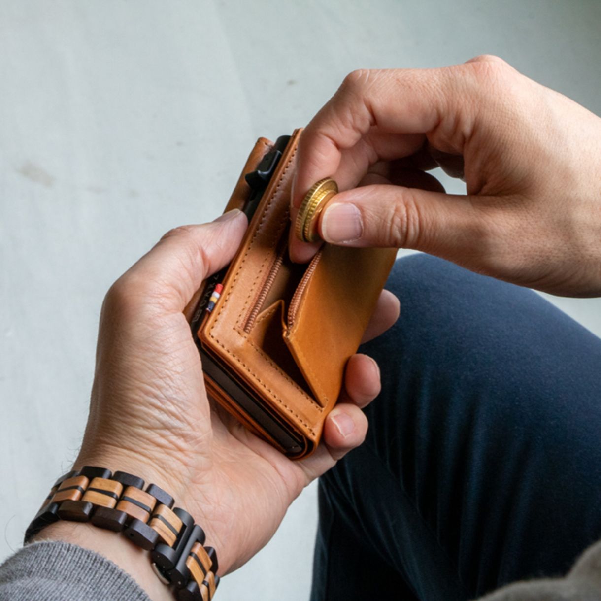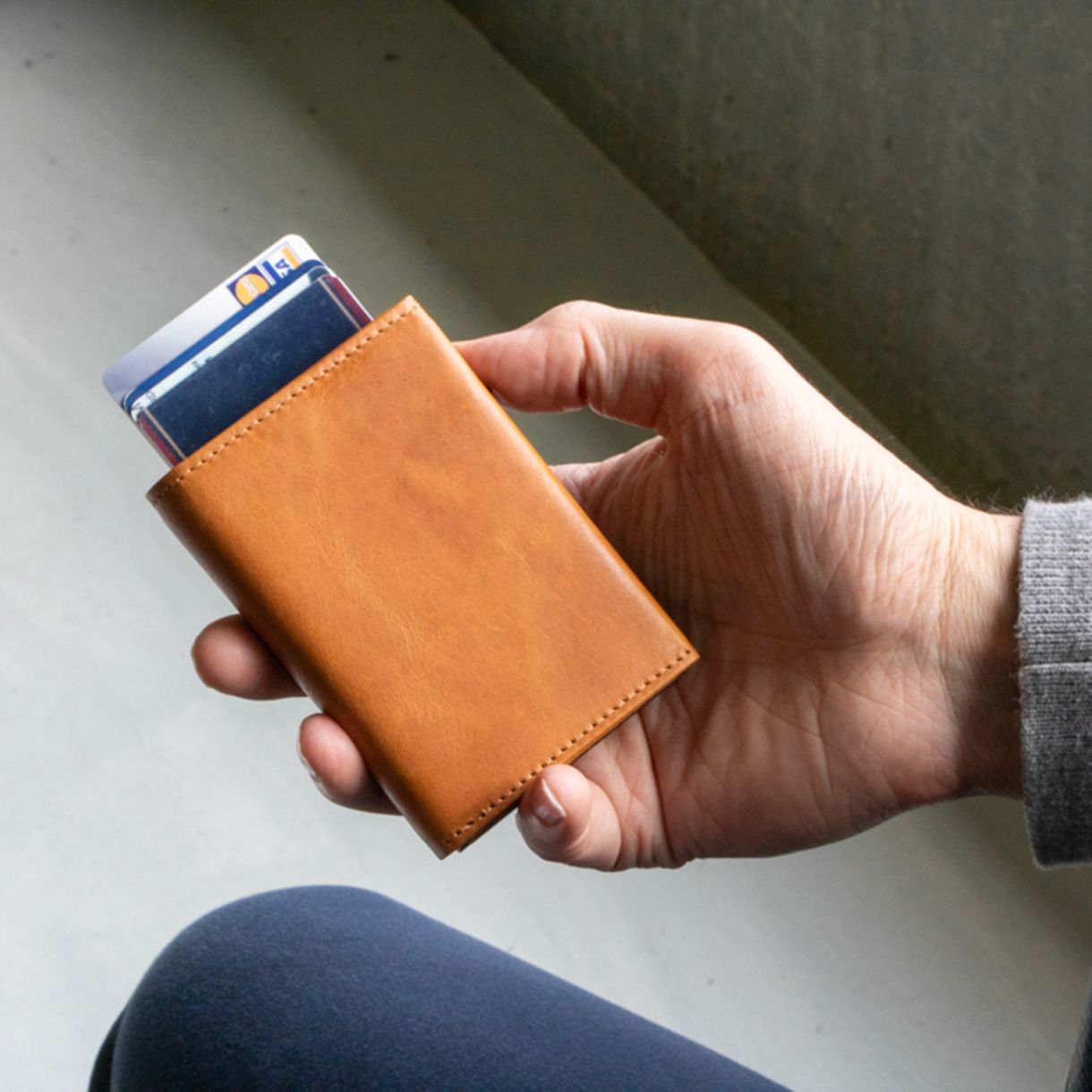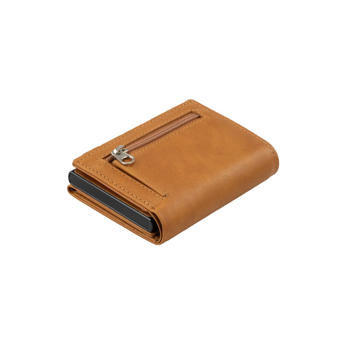 Елегантна версия на класическия троен портфейл с RFID защита, който побира до 10 карти, банкноти и монети – всичко това е в компактен, удобен за джоба дизайн. Изработен от висококачествена кожа със солидна метална сърцевина и бутон за бърз достъп за лесно изваждане на картата.