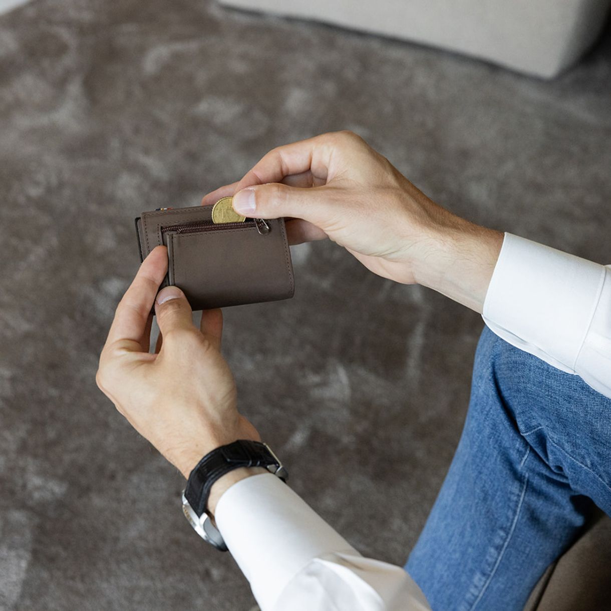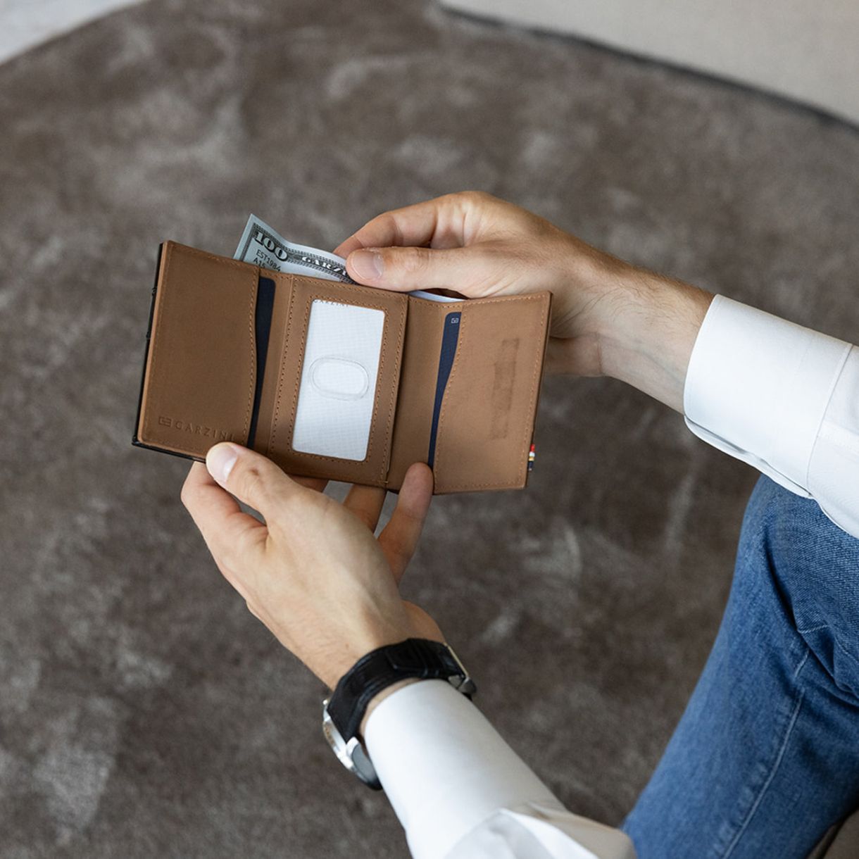 Елегантна версия на класическия троен портфейл с RFID защита, който побира до 10 карти, банкноти и монети – всичко това е в компактен, удобен за джоба дизайн. Изработен от висококачествена кожа със солидна метална сърцевина и бутон за бърз достъп за лесно изваждане на картата.
